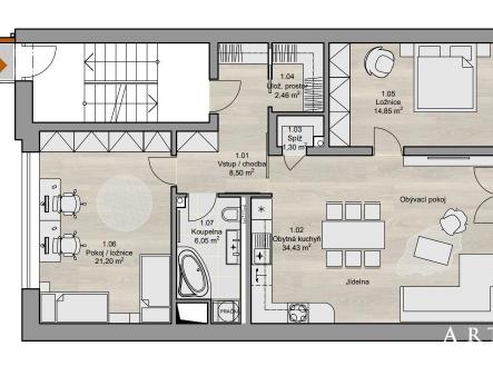 REZERVUJ DO 31.01.2026 a obdržíš poukaz v hodnotě 150.000,- Kč na kuchyňskou linku. Exkluzivní novostavba bytu s balkonem a nádherným výhledem – Vavřinec u Blanska Hledáte domov, který kombinuje klid, soukromí, luxusní prostor a kvalitní stavbu? Máme pro vás jedinečnou nabídku – prostorný, slunný byt v exkluzivním viladomě v malebném Vavřinci u Blanska. Tento cihlový dům nejvyšší kvality byl postaven s maximálním důrazem na energetickou úspornost a dlouhou životnost. Všechny stropy včetně střešní konstrukce jsou monolitické železobetonové, příčkové zdivo zděné, interiérové dveře vysoké 210 cm a po celém bytě je komfortní podlahové vytápění. Dominantou bytu je obývací pokoj s kuchyňským koutem o rozloze 34,4 m² s přímým vstupem na balkon (6,7 m²), odkud vás okouzlí nerušený výhled na okolní louky a lesy. Byt je navržen tak, aby poskytoval maximální ergonomii a prostor – nechybí ani samostatná zděná spíž v kuchyni a prostorná šatna u vstupu. Součástí prodeje je vlastní parkovací stání a sklepní kóje v suterénu domu. Viladům je koncipován s ohledem na absolutní soukromí – každý byt má promyšlené umístění, aby byl klid a maximální komfort . Dispozice bytu: Obývací pokoj s jídelnou: 34,43 m² Ložnice: 14,85 m² Pokoj: 21,20 m² Koupelna: 6,05 m² Chodba: 8,50 m² Spíž: 1,30 m² Balkon: 6,7 m² Sklep: 4,60 m² Užitná plocha bez balkonu a sklepa: 89 m² Lokalita: Vavřinec nabízí přímé autobusové spojení do Blanska a kouzlo bydlení v přírodě, přesto s dobrou dostupností města. Aktuálně pracujeme na dokončení bytů, předpokládaný termín kolaudace je koncem tohoto roku. Cena je za dokončený, zkolaudovaný byt bez kuchyňské linky. Dopřejte si domov, který má vše, doporučuji osobní prohlídku. Na konci fotogalerie průběh stavby.