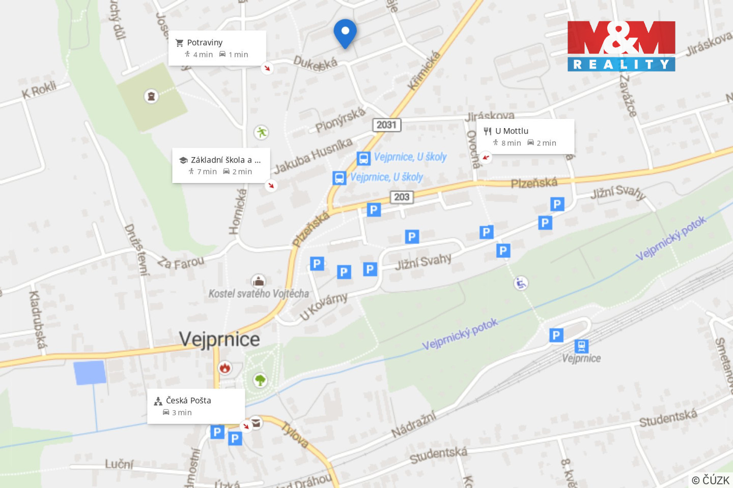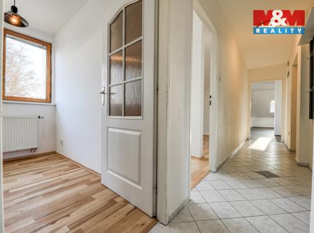 Podkrovní byt 4+kk s komorou, vlastním pozemkem (114 m²) a krytým parkovacím stáním ve vyhledávané lokalitě Vejprnice, ul. Dukelská. Prostorná jednotka o ploše 108 m² se nachází ve 3. NP bytového domu bez výtahu a nabízí praktické dispoziční řešení s neprůchozími pokoji. Dominantou bytu je prostorný obývací pokoj s kuchyňským koutem, který tvoří přirozené centrum domova a nabízí dostatek místa pro rodinný život i setkávání s přáteli. Dispozice dále zahrnuje několik samostatných pokojů, které poskytují soukromí i flexibilní využití. Interiér prošel částečnou modernizací (koupelna, kuchyňský kout, podlahy, dveře). Byt je světlý a vzdušný díky arkýřovým a střešním oknům. Vytápění zajišťuje vlastní plynový kotel, ohřev vody je řešen samostatně pro koupelnu i kuchyň. Pozemek/zahrádka před domem nabízí i kryté parkovací stání pro vůz včetně kolny pro uložení věcí. Obec disponuje kompletní občanskou vybaveností (škola, školka, obchody, restaurace, pošta, lékaři) a výbornou dostupností.