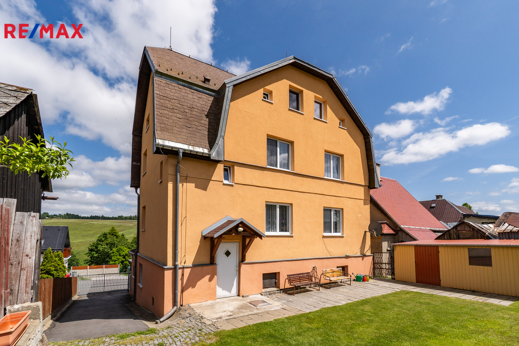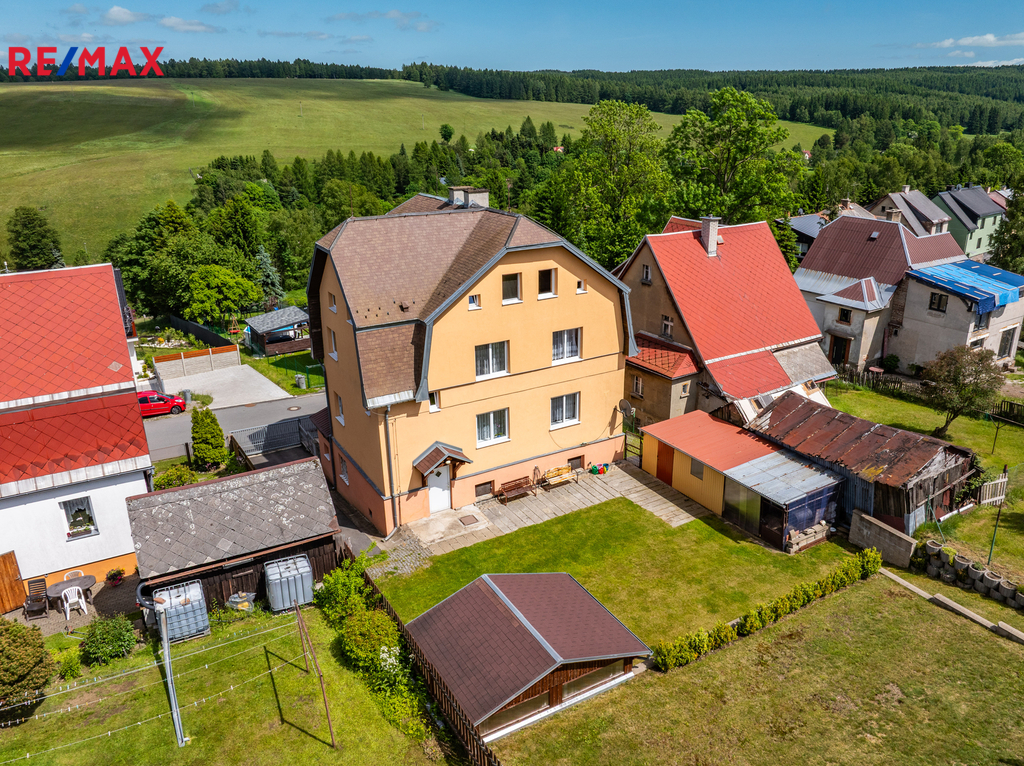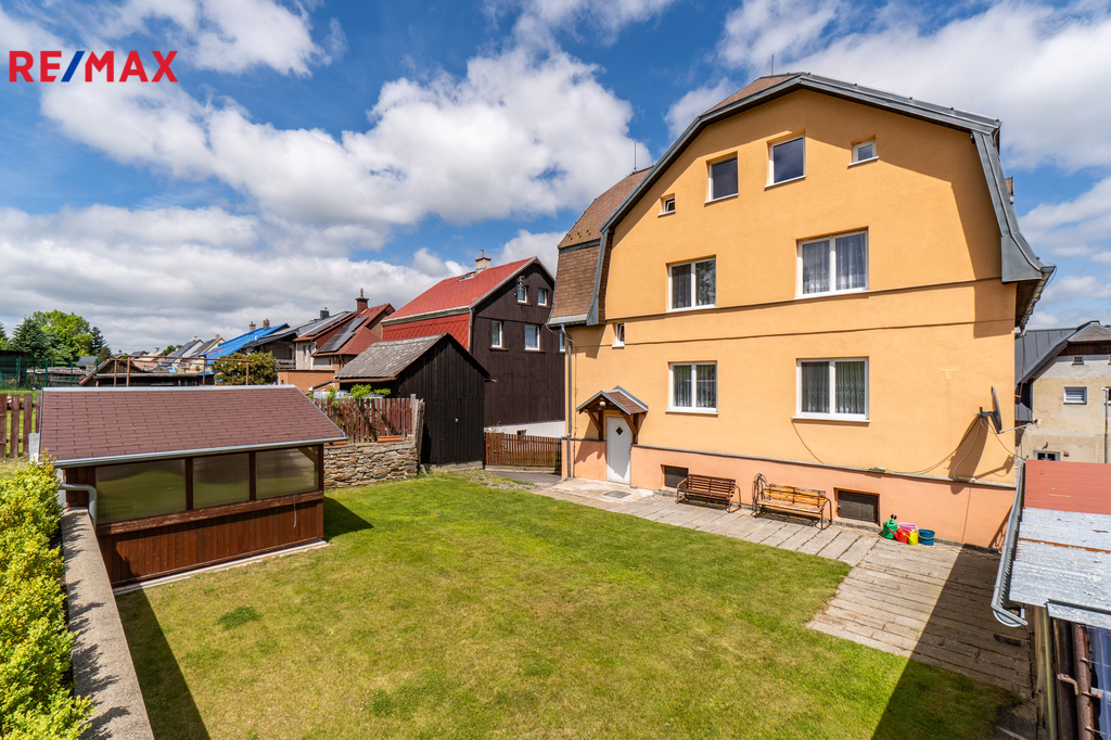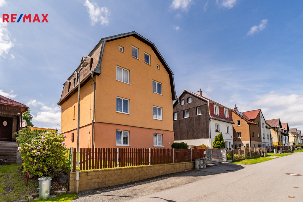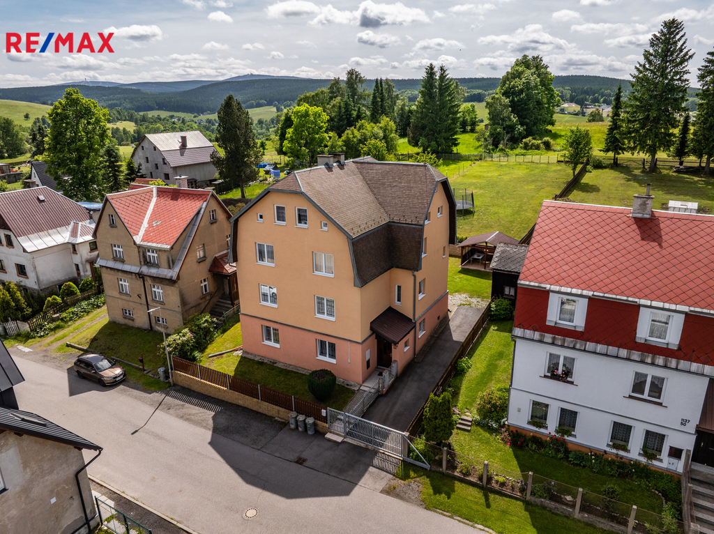 Dovolte mi představit nemovitost v horském městě Vejprty nacházejícím se přímo na hranici s Německem, který svým technickým stavem, dispozicí i lokalitou splní očekávání investorů se zájmem o dlouhodobou návratnost a využití v rámci ubytovacích služeb v oblíbené horské oblasti. Dům nabízí celkovou užitnou plochu přibližně 328 m² a je situován na pozemku o velikosti 758 m² v klidné části města, jen několik minut od hranic s Německem. Stavba stojí na pevných kamenných základech, má čtyři podlaží a prošla řadou technických vylepšení. Střecha včetně zateplení i silikonová fasáda byly realizovány přibližně před 15 lety. Vytápění zajišťuje ekologický kotel Ekoscroll emisní třídy 5 na suché palivo - uhlí, doplněný o radiátory a termostatické hlavice Heimeier, instalované před devíti lety. K ohřevu vody slouží kombinovaný kotel značky Dražice o objemu 200 litrů. V jídelní části ve 2.NP a 3.NP je navíc připravena možnost vybudování krbových kamen. Dům je napojen na všechny inženýrské sítě – elektřina v mědi, voda v plastu z obecního vodovodu a odpad je sveden do veřejné kanalizace. Plastová okna s izolačními dvojskly přispívají k nízkým energetickým ztrátám a během roku 2025 bude dům připojen na optický internet od společnosti CETIN, což ocení nejen rodiny, ale i ti, kteří chtějí dům využít jako zázemí pro práci na dálku či pronájem. Dispozičně je objekt rozdělen do dvou bytových jednotek 3+1 ve dvou podlažích, s dalším podlažím nabízejícím flexibilní využití – od kanceláří přes ateliér až po samostatné ubytování pro hosty. Nechybí komory, sklady a další úložné prostory včetně plně využitelného suterénu, kde se nachází technické zázemí, fitness a skladové místnosti. Zahrada je pečlivě udržovaná, nabízí zastřešené posezení, přístřešky pro nářadí či budoucí dílnu a praktické oplocení včetně vjezdu s manuální bránou. Ve městě Vejprty je veškerá občanská vybavenost – škola, školka, supermarket Billa, lékař i pošta – je dostupná v docházkové vzdálenosti. V okolí se nachází známé lyžařské areály Klínovec a Boží Dar, dále lázně Jáchymov nebo oblíbená cyklotrasa podél hranice s Německem. Do Chomutova nebo Karlových Varů dojedete pohodlně do 40 minut. Pokud hledáte nemovitost s charakterem, stabilním technickým základem a širokým potenciálem využití, neváhejte mě kontaktovat. Rád vás osobně provedu a představím vám všechny přednosti této zajímavé nabídky.