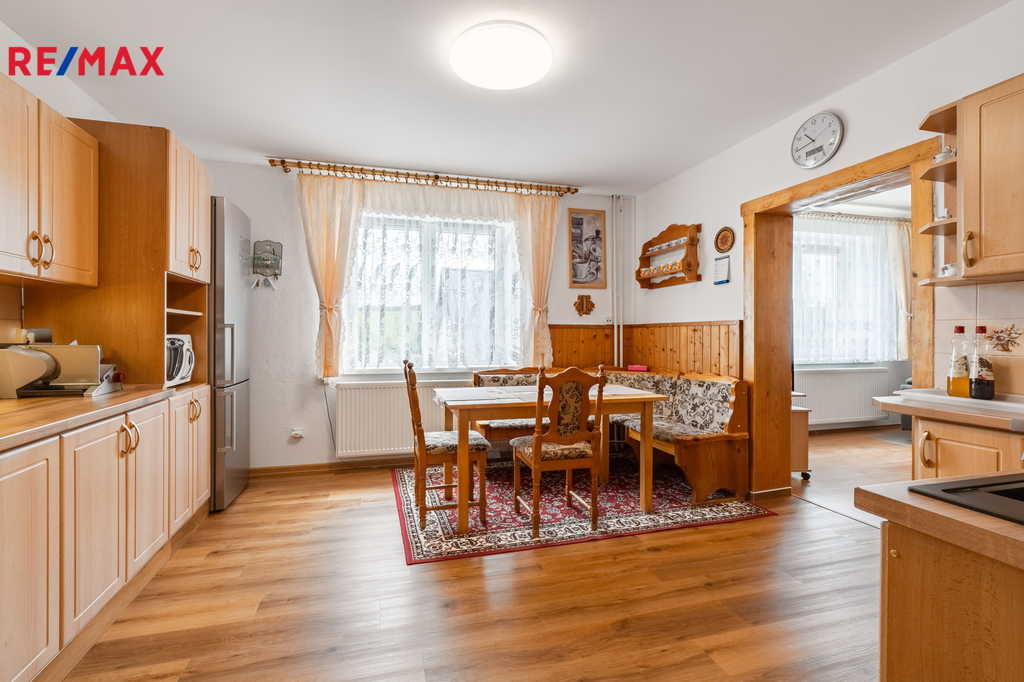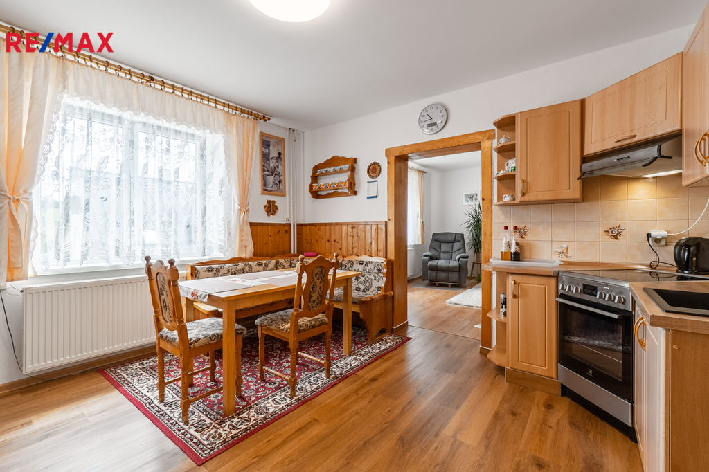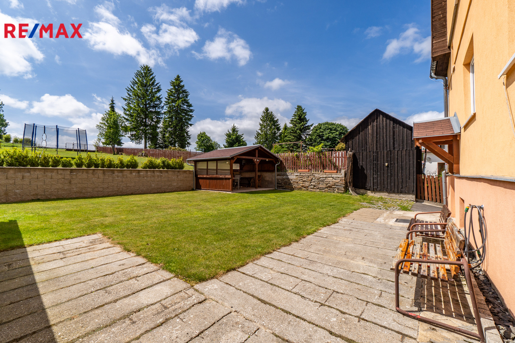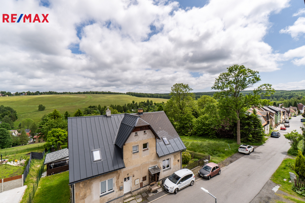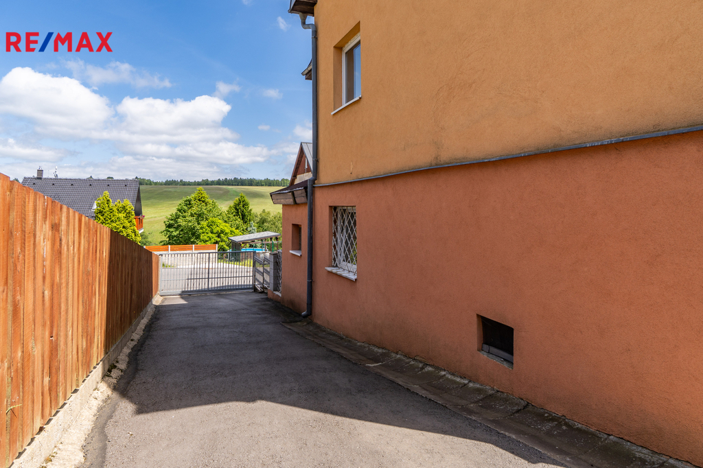 Dovolte mi představit nemovitost v horském městě Vejprty nacházejícím se přímo na hranici s Německem, který svým technickým stavem, dispozicí i lokalitou splní očekávání investorů se zájmem o dlouhodobou návratnost a využití v rámci ubytovacích služeb v oblíbené horské oblasti. Dům nabízí celkovou užitnou plochu přibližně 328 m² a je situován na pozemku o velikosti 758 m² v klidné části města, jen několik minut od hranic s Německem. Stavba stojí na pevných kamenných základech, má čtyři podlaží a prošla řadou technických vylepšení. Střecha včetně zateplení i silikonová fasáda byly realizovány přibližně před 15 lety. Vytápění zajišťuje ekologický kotel Ekoscroll emisní třídy 5 na suché palivo - uhlí, doplněný o radiátory a termostatické hlavice Heimeier, instalované před devíti lety. K ohřevu vody slouží kombinovaný kotel značky Dražice o objemu 200 litrů. V jídelní části ve 2.NP a 3.NP je navíc připravena možnost vybudování krbových kamen. Dům je napojen na všechny inženýrské sítě – elektřina v mědi, voda v plastu z obecního vodovodu a odpad je sveden do veřejné kanalizace. Plastová okna s izolačními dvojskly přispívají k nízkým energetickým ztrátám a během roku 2025 bude dům připojen na optický internet od společnosti CETIN, což ocení nejen rodiny, ale i ti, kteří chtějí dům využít jako zázemí pro práci na dálku či pronájem. Dispozičně je objekt rozdělen do dvou bytových jednotek 3+1 ve dvou podlažích, s dalším podlažím nabízejícím flexibilní využití – od kanceláří přes ateliér až po samostatné ubytování pro hosty. Nechybí komory, sklady a další úložné prostory včetně plně využitelného suterénu, kde se nachází technické zázemí, fitness a skladové místnosti. Zahrada je pečlivě udržovaná, nabízí zastřešené posezení, přístřešky pro nářadí či budoucí dílnu a praktické oplocení včetně vjezdu s manuální bránou. Ve městě Vejprty je veškerá občanská vybavenost – škola, školka, supermarket Billa, lékař i pošta – je dostupná v docházkové vzdálenosti. V okolí se nachází známé lyžařské areály Klínovec a Boží Dar, dále lázně Jáchymov nebo oblíbená cyklotrasa podél hranice s Německem. Do Chomutova nebo Karlových Varů dojedete pohodlně do 40 minut. Pokud hledáte nemovitost s charakterem, stabilním technickým základem a širokým potenciálem využití, neváhejte mě kontaktovat. Rád vás osobně provedu a představím vám všechny přednosti této zajímavé nabídky.