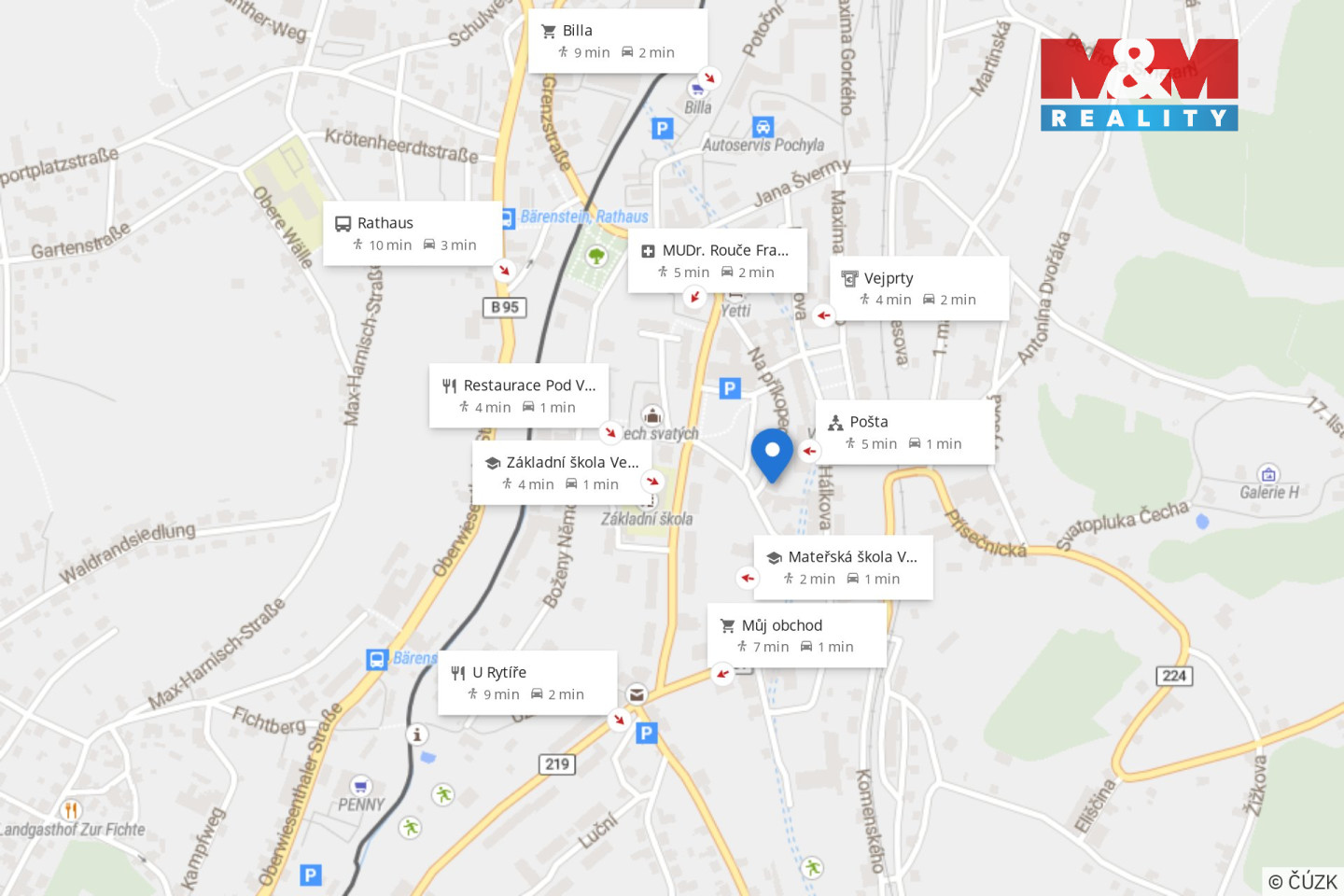 Nabízíme Vám k prodeji apartmán ve Vejprtech, který se nachází v nejvyšším podlaží historického domu. Dispozici tvoří světlá obytná místnost, praktická kuchyňka a koupelna se sprchovým koutem a toaletou. Součástí je také sklep, společné prostory domu a půda. Vytápění je řešeno elektrickými topidly, elektřina je aktuálně odpojena. Apartmán se nachází v nejvyšším podlaží historického bytového domu ve Vejprtech, městě ležícím přímo na hranici s Německem. Tato lokalita přináší výjimečnou příležitost pro ty, kteří chtějí bydlet v České republice a zároveň využít pracovních možností v nedalekém Sasku, kam je to doslova pár kroků. Vejprty jsou navíc oblíbeným výchozím bodem pro milovníky Krušných hor. Nedaleko se nachází Klínovec, Boží Dar i další vyhledávaná zimní střediska. Okolí nabízí celoroční sportovní i rekreační vyžití, včetně běžkařských tratí, turistických cest a cyklostezek. Pokud Vás nabídka zaujala neváhejte kontaktovat makléře. S financováním Vám pomůže naše hypocentrum.
