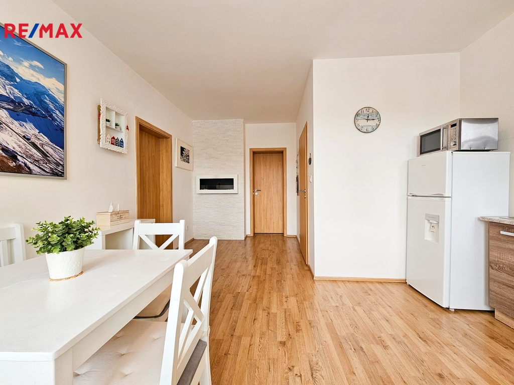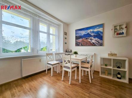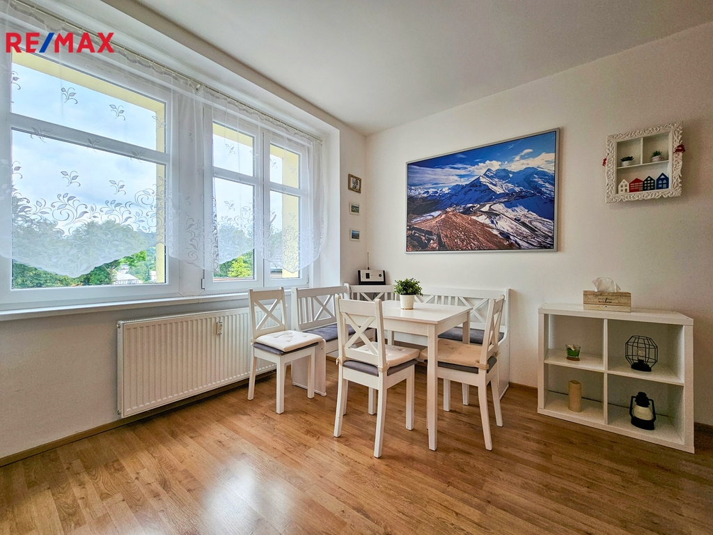CENA K JEDNÁNÍ Tento apartmán je ideální pro každého, kdo rád jezdí na hory, ale zároveň se nechce vzdát výhod města. Kdo chce přijet do tepla, neřešit odklízení sněhu a roztápění zmrzlého domu. A taky bez problémů zaparkovat. Toto vše a ještě další výhody vám poskytne nabízený apartmán v centru horského města Vejprty. Dálkové vytápění, uklizené komunikace a obchod 2 minuty od domu. Pokud rádi sportujete, na Klínovci u lanovek jste za 10 minut autem a na nekonečné toulky na kole krásnými lesy vyrazíte přímo od domu. Lyže i kola si uložíte do vlastního zděného sklepa, kde na vás v bezpečí počkají. Samotný apartmán je útulný a najdete zde vše, co potřebujete - v předsíni skříň a věšáky, dále prostorný pokoj s kuchyňským koutem a ložnici s palandou, kterou milují děti. A samozřejmě koupelnu se sprchovým koutem a toaletou. Okna jsou situována do klidné boční ulice a zadní části domu. Máte chuť se přijet podívat? Zavolejte, rád vás provedu. Pomoc s financováním je samozřejmostí. Těším se na setkání. ).