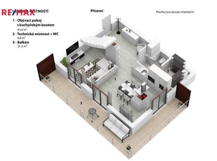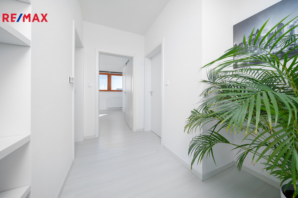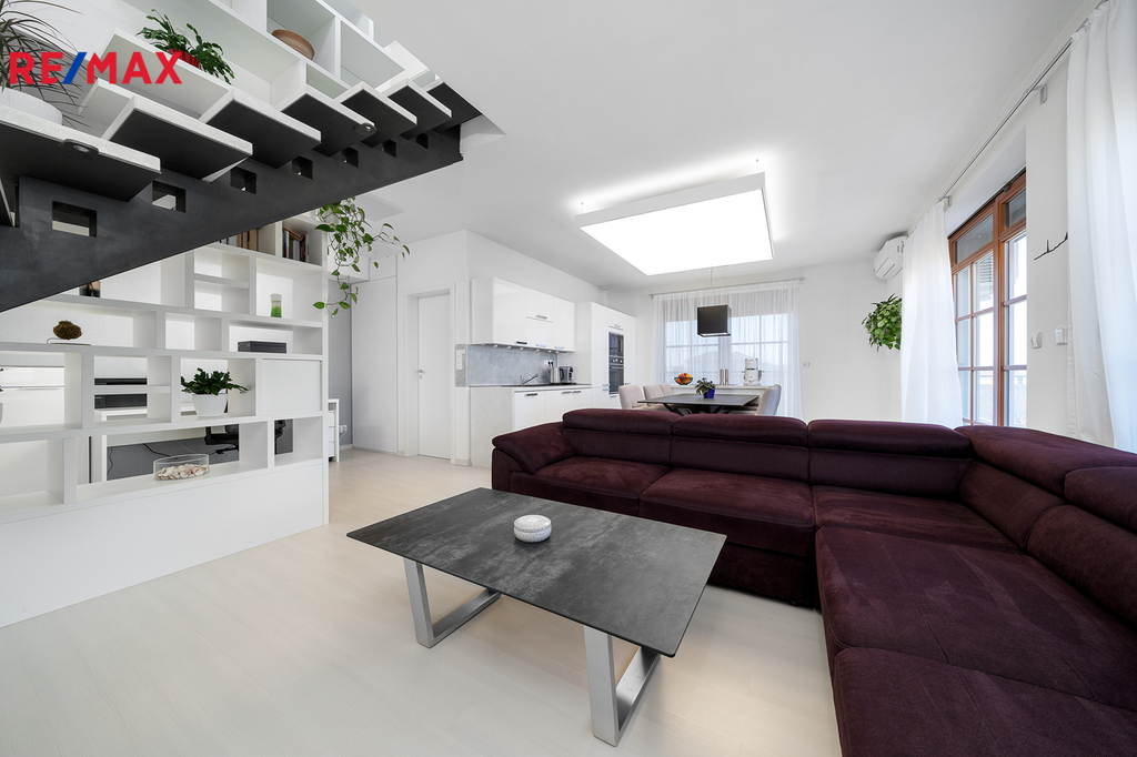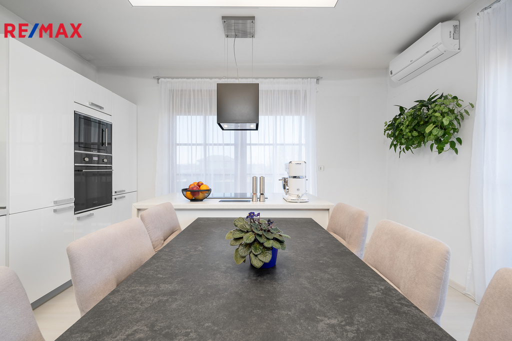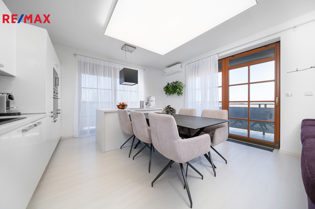 Nabízím k prodeji prostorný a světlý mezonetový byt 3+kk o velikosti 102,6 m², který se nachází na kraji obce Veleň (Mírovice) v klidné rezidenční zástavbě s výhledem do přírody. Byt je skvěle dispozičně řešený – v přízemí bytu se nachází obývací pokoj s kuchyňským koutem, který je orientovaný na sever a západ, což zajišťuje příjemné světlo po celý den. V horním patře pak najdete ložnici s orientací na jih a druhý pokoj situovaný na západ. K bytu náleží velká terasa do tvaru „L“ o výměře 25 m², která nabízí dostatek prostoru pro relaxaci, venkovní posezení nebo třeba pěstování rostlin. Součástí je také praktická komora o velikosti 1,8 m², samostatná garáž a venkovní parkovací stání přímo před ní. Komfort bydlení zvyšuje klimatizace v každém pokoji a venkovní elektrické žaluzie, které poskytují soukromí a ochranu před sluncem. Lokalita je ideální pro ty, kteří hledají klidné bydlení v blízkosti přírody, ale zároveň chtějí mít na dosah Prahu. Okolí nabízí mnoho možností pro volnočasové aktivity, procházky i sportovní vyžití. Pokud hledáte moderní a komfortní bydlení s dostatkem prostoru a skvělou dostupností, rád vám tento byt osobně představím. Neváhejte mě kontaktovat pro více informací nebo domluvení prohlídky.