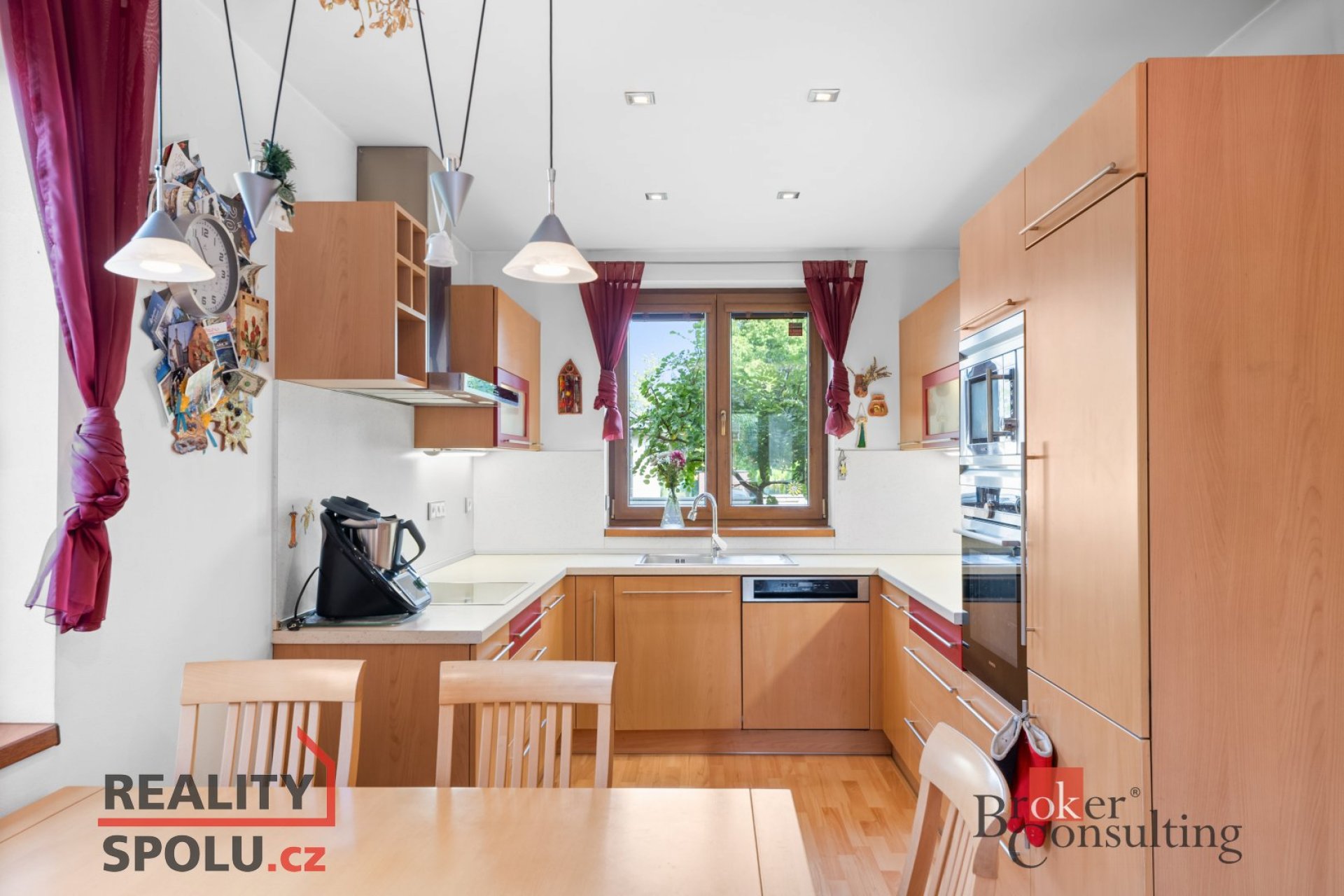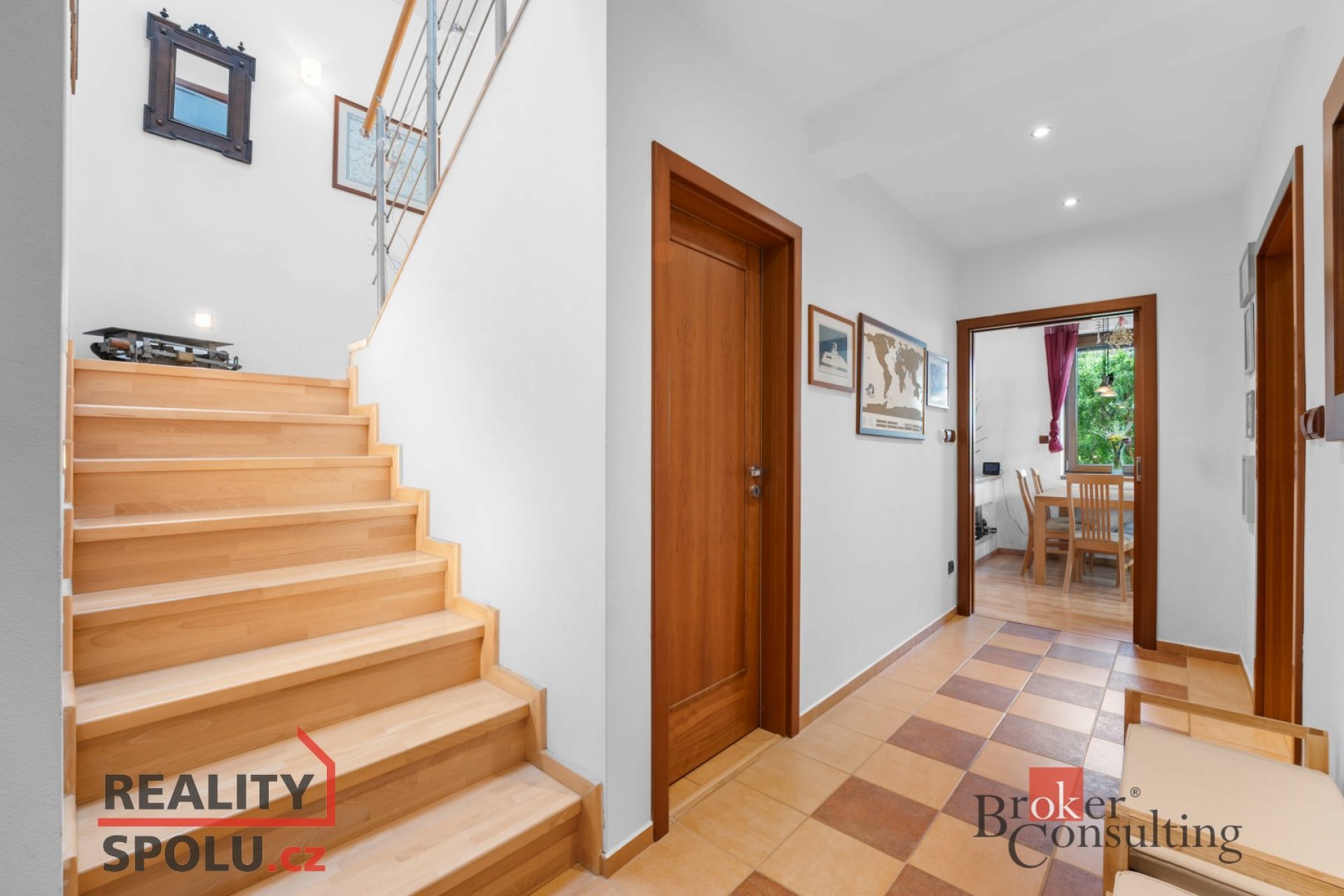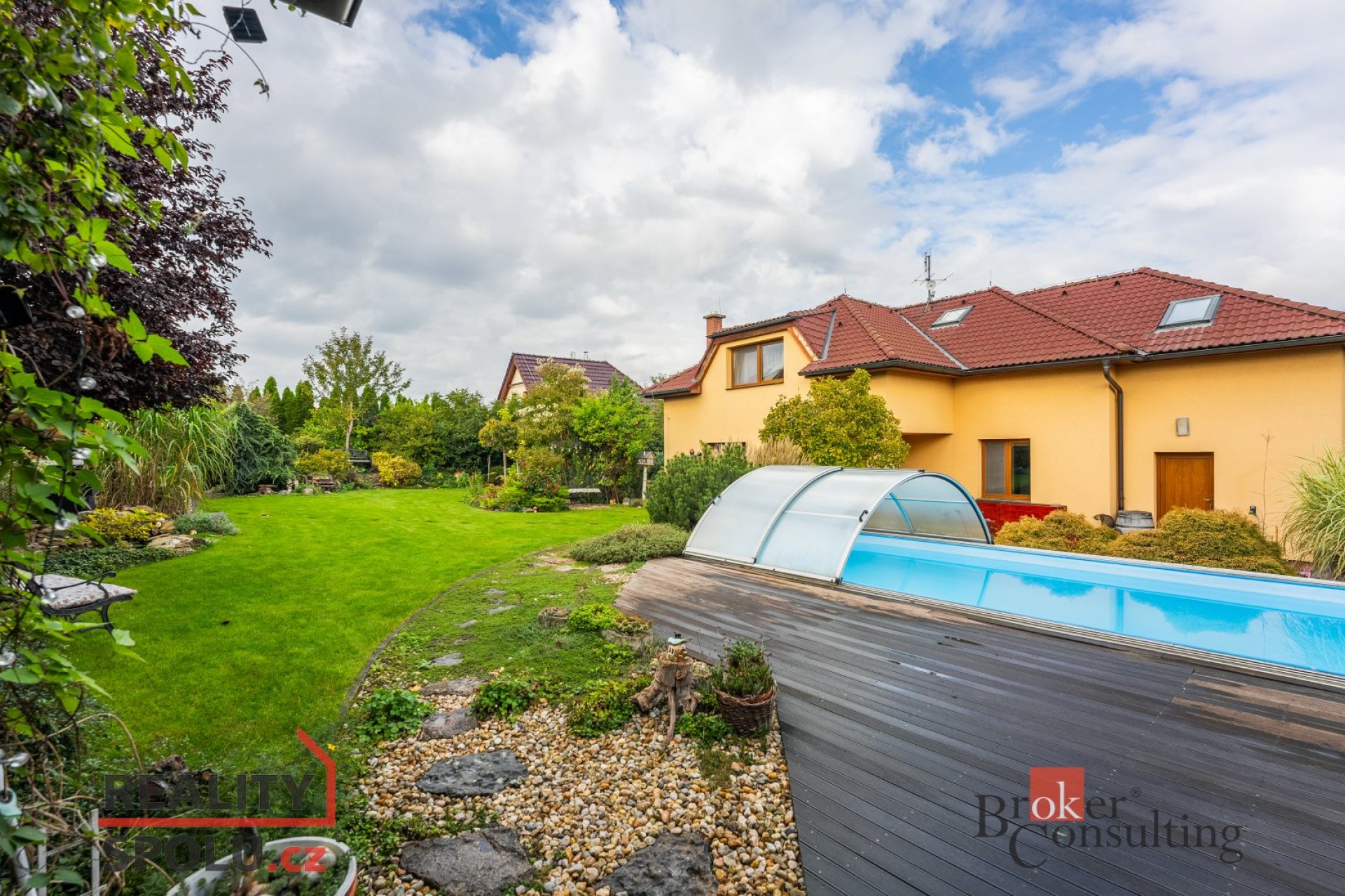 Nabízíme k prodeji útulný rodinný dům v klidné a vyhledávané lokalitě obce Veleň, která je vzdálená pouze 10 minut od pražské části Čakovice. Dvoupodlažní dům o dispozici 6+kk stojí na pozemku o rozloze 1156 m2 s celkovou užitnou plochou 190 m2. V přízemí se nachází předsíň s velkou vestavěnou skříní a technickou místností, velký obývací pokoj s krbem, plně vybavený kuchyňský kout s jídelní částí, ložnice a moderní koupelna s vanou, sprchovým koutem a samostatnou toaletou. V přízemí je jak podlahové topení, tak radiátorové. V 1. podlaží naleznete 4 pokoje, koupelnu s vanou a toaletou. Na okrasné, prostorné zahradě se nachází pergola s krbem, studna, jezírko se skalkou, zastřešený a vyhřívaný bazén, samostatně stojící dílna, parkovací stání a garáž, která je součástí stavby, vše zajištěno zabezpečovacím systémem. Dům je kvalitně zateplen, instalací tepelného čerpadla, či fotovoltaiky je po přepočtu možno dosáhnout výrazně lepší třídy energetické náročnosti. Velkou výhodou je občanská vybavenost v okolí této nemovitosti a výborná dostupnost MHD (300m) .V blízkosti se nachází 2 základní a mateřské školy, nově založená předškolka ,, CIRKUS", 4 dětská hřiště, sportoviště, 3 obchody s potravinami, nově otevřený KOOP 24/7 v místě, , restaurace se zahrádkou, kavárna, cukrárna, zdravotnické zařízení pro dospělé i děti, OC Letňany 10 min autem, jsou zde též cyklostezky, jezdecký oddíl, Alzabox a Zásilkovna. Kdo hledá klidné místo, přírodu a zároveň chce být v blízkosti Prahy, je toto ideální místo na další pohodový život Vaší rodiny. Těšíme se na prohlídku s Vámi.
