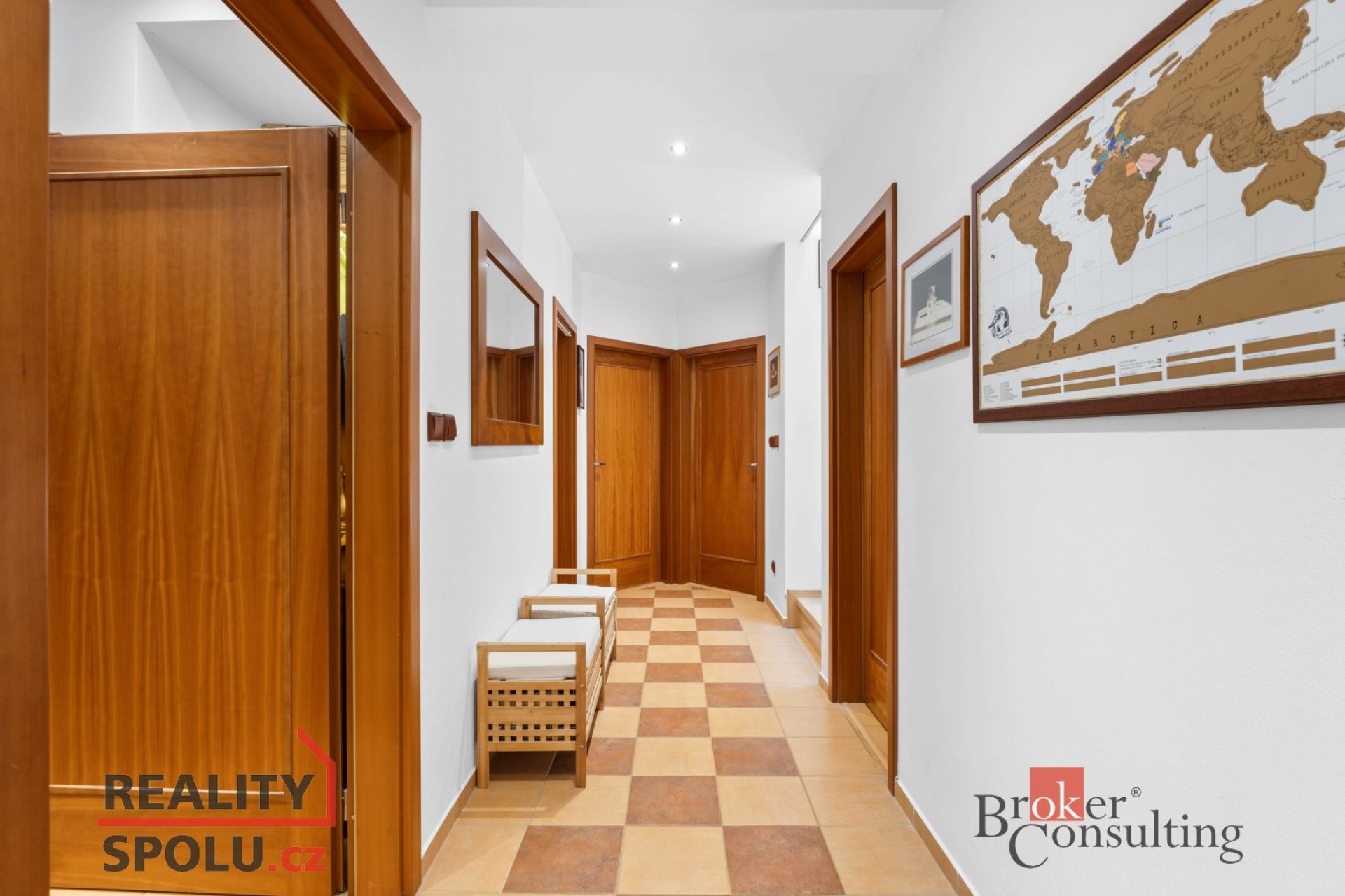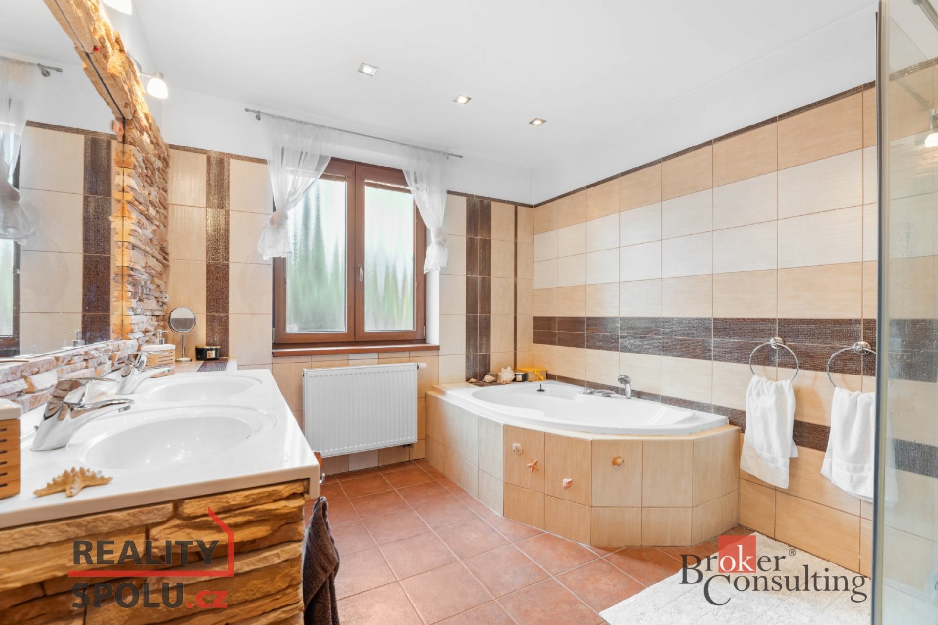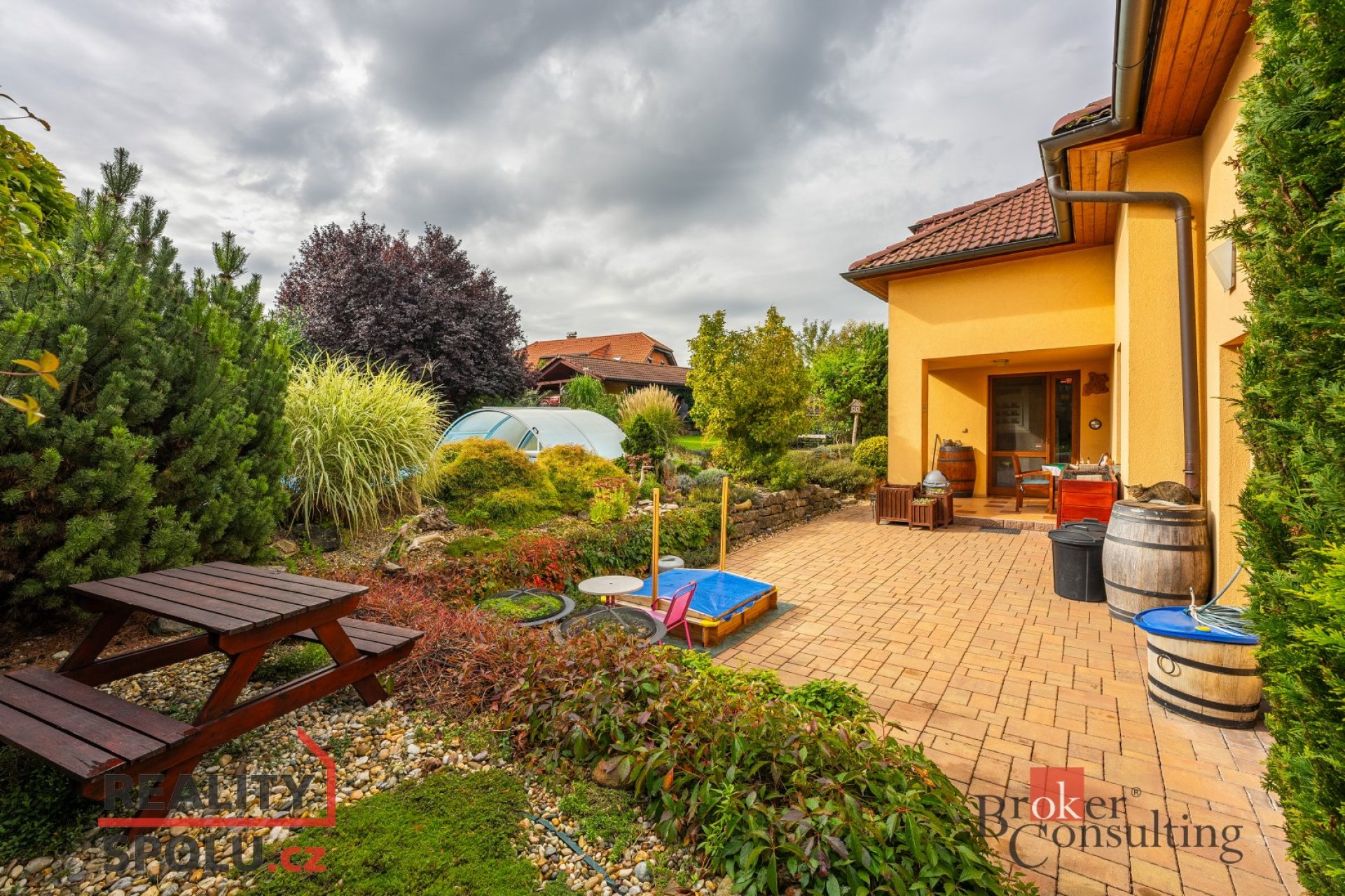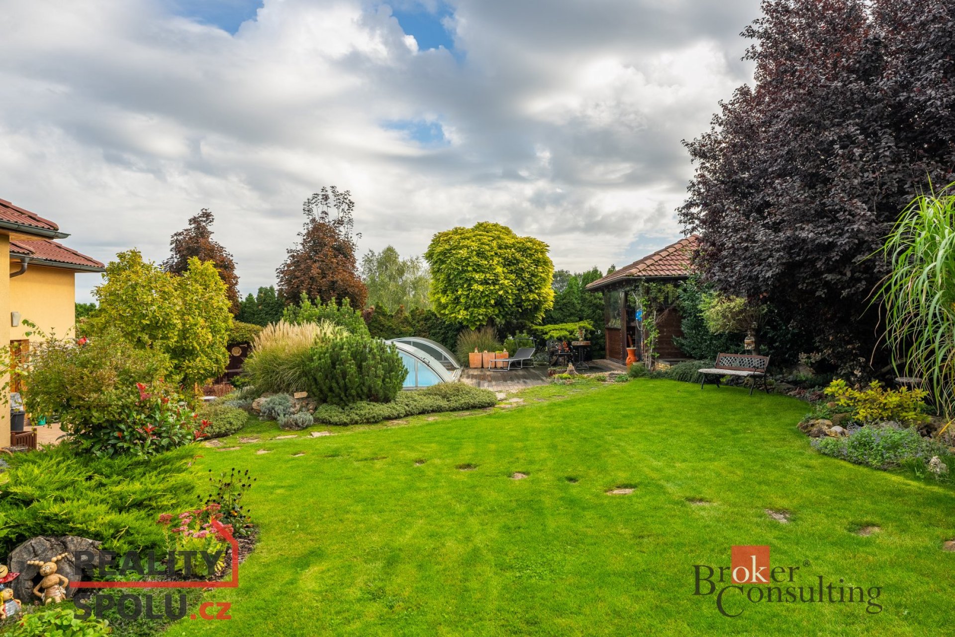 Nabízíme k prodeji útulný rodinný dům v klidné a vyhledávané lokalitě obce Veleň, která je vzdálená pouze 10 minut od pražské části Čakovice. Dvoupodlažní dům o dispozici 6+kk stojí na pozemku o rozloze 1156 m2 s celkovou užitnou plochou 190 m2. V přízemí se nachází předsíň s velkou vestavěnou skříní a technickou místností, velký obývací pokoj s krbem, plně vybavený kuchyňský kout s jídelní částí, ložnice a moderní koupelna s vanou, sprchovým koutem a samostatnou toaletou. V přízemí je jak podlahové topení, tak radiátorové. V 1. podlaží naleznete 4 pokoje, koupelnu s vanou a toaletou. Na okrasné, prostorné zahradě se nachází pergola s krbem, studna, jezírko se skalkou, zastřešený a vyhřívaný bazén, samostatně stojící dílna, parkovací stání a garáž, která je součástí stavby, vše zajištěno zabezpečovacím systémem. Dům je kvalitně zateplen, instalací tepelného čerpadla, či fotovoltaiky je po přepočtu možno dosáhnout výrazně lepší třídy energetické náročnosti. Velkou výhodou je občanská vybavenost v okolí této nemovitosti a výborná dostupnost MHD (300m) .V blízkosti se nachází 2 základní a mateřské školy, nově založená předškolka ,, CIRKUS", 4 dětská hřiště, sportoviště, 3 obchody s potravinami, nově otevřený KOOP 24/7 v místě, , restaurace se zahrádkou, kavárna, cukrárna, zdravotnické zařízení pro dospělé i děti, OC Letňany 10 min autem, jsou zde též cyklostezky, jezdecký oddíl, Alzabox a Zásilkovna. Kdo hledá klidné místo, přírodu a zároveň chce být v blízkosti Prahy, je toto ideální místo na další pohodový život Vaší rodiny. Těšíme se na prohlídku s Vámi.