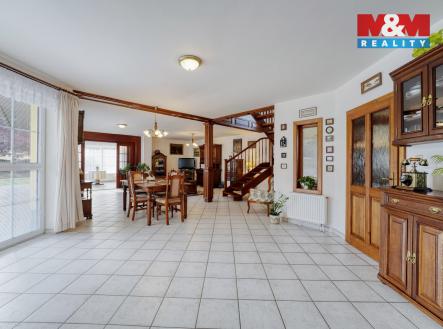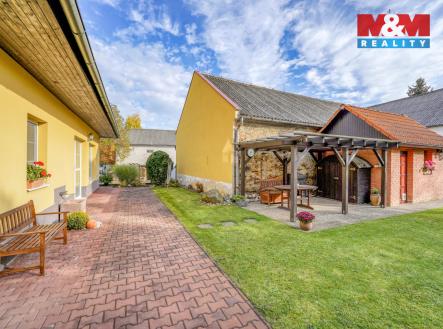 Hledáte místo pro komfortní život celé Vaší rodiny v tom nejvyšším standardu? Máme to pravé. Přinášíme Vám možnost koupi vícegeneračního RD v perfektním stavu s udržovaným pozemkem (887m²), který poskytne dostatek soukromí pro relax i případné zahradničení. Najdete zde majestátní přízemí se salónem, obývacím pokojem s kuchyňským koutem, koupelnu, WC, komoru aj. V horním patře jsou pak samostatné pokoje, v nádherném designu. Další možnosti využití má samostatná část domu (s vlastním vchodem, kde najdeme hlavní pokoj, vedlejší místnost, koupelnu s WC), což může být využito buď pro část rodiny nebo klidně pro své podnikání (ordinace, kancelář, apod.). Dále zde samozřejmě je i zázemí pro Vaše hobby ve formě zahradního domku. Nemovitost je vytápěna plynovými kotli, částečně podlahovým topením, ohřev vody bojlery. Je samozřejmě napojena na vodovod (pro užitkovou vodu jsou zde také dvě studny) a na kanalizaci. Centrum klidné obce s krátkým dojezdem do Prahy