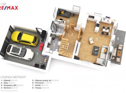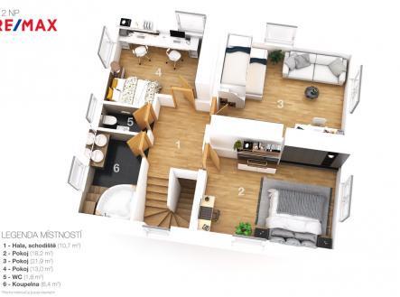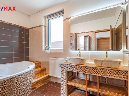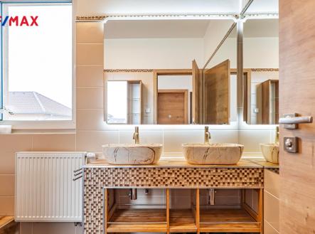 Hledáte klidné místo k životu pro vaši početnou rodinu? Vítejte v Mírovicích, obci, která se nachází pouhé 3 minuty jízdy autem od pražských Čakovic. Prostorný moderní rodinný dům se zahradou o velikosti 540 m² a garáží pro dvě auta je postaven na kraji obce. Dům byl zkolaudován v roce 2017, disponuje 5 obytnými místnostmi a je dvoupodlažní. Každé podlaží poskytuje 72 m² plochy a k tomu garáž o velikosti 36 m², kde pohodlně zaparkujete dvě auta. To je dostatek prostoru, že? V přízemí domu je světlý a prostorově velkorysý obývací pokoj s moderní kuchyní. Z obývacího pokoje je přímý vstup na terasu a zahradu domu. Díky francouzský oknům je tento hlavní obytný prostor fantasticky prosvětlen. V obývacím pokoji i v hale domu je položena dřevěná plovoucí podlaha. Vedle obývacího pokoje je pokoj pro hosty, dále koupelna se sprchovým koutem a WC. V této koupelně je umístěn kondenzační plynový kotel značky Junkers, který zajišťuje ohřev vody i topení v celém domě. Dále je zde umístěna automatická pračka se sušičkou. V přízemí nechybí ani komora šikovně řešená pod schody do patra. V patře domu jsou další tři obytné místnosti, samostatná toaleta a koupelna s rohovou vanou a dvěma umyvadly. Díky barevnému dynamickému podsvícení a reproduktoru na stropě si můžete každodenní hygienu opravdu užít. V hale je položena dřevěná plovoucí podlaha, v obytných místnostech je plovoucí podlaha laminátová. Dům se nachází v energetické třídě B a jeho provoz je velmi úsporný. Je postaven z cihel POROTHERM PROFI DRYFIX s tloušťkou 300mm. Obvodové stěny jsou opatřeny kontaktním zateplením. Stěny garáže jsou tloušťky 250 mm. Vytápění domu i ohřev vody zajišťuje plynový kondenzační kotel JUNKERS ZBS 14/100SE-3 MA CerapurModul, který má zabudovaný zásobník TUV o objemu 101 litrů. Tento kotel je vybaven energeticky úsporným oběhovým čerpadlem, které pomáhá šetřit energii, ale zároveň spolehlivě a účinně zajišťuje vytápění i teplou vodu celého domu. Kotel splňuje parametry energetické třídy A. Teplota v domě je regulována pomocí digitálního prostorového termostatu BOSCH CR 100, který je umístěn v obývacím pokoji. V domě jsou plastová bílá okna s dvojskly. Díky sedlové střeše je v domě i pochozí půdní prostor, který poskytuje další úložné prostory pro početnou rodinu. Dům je napojen na vodovodní řad i kanalizaci obce. Pokud vás tento dům zaujal, budu se na vás těšit na prohlídce.