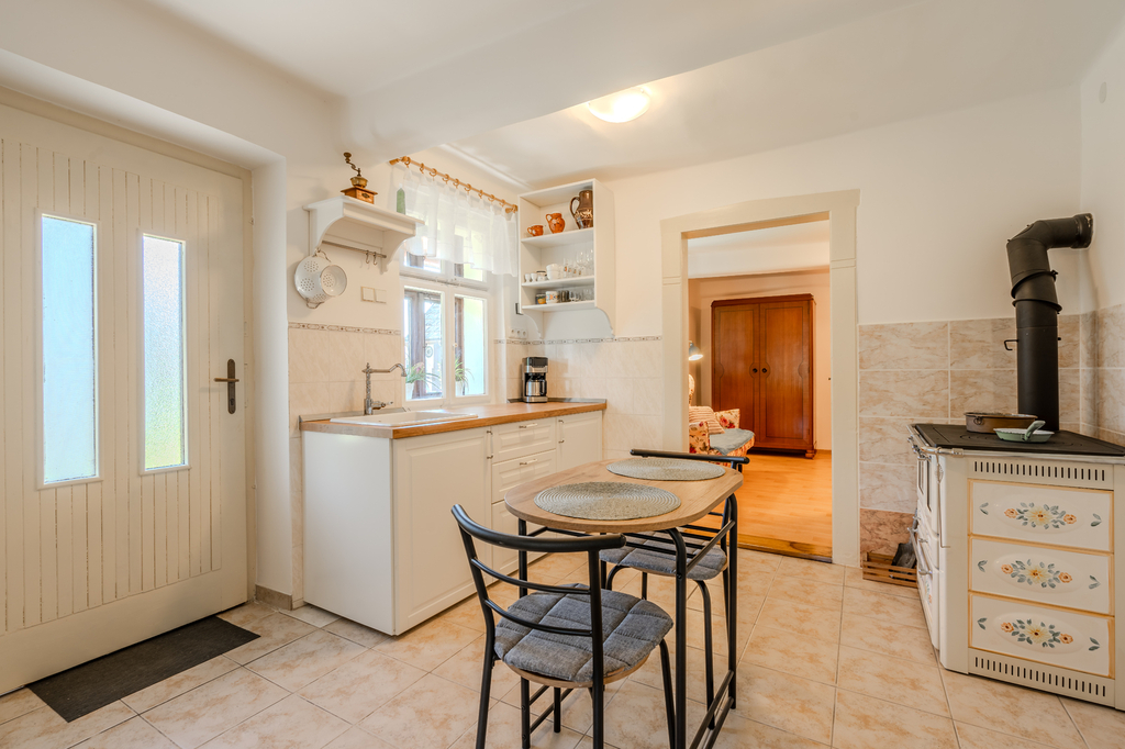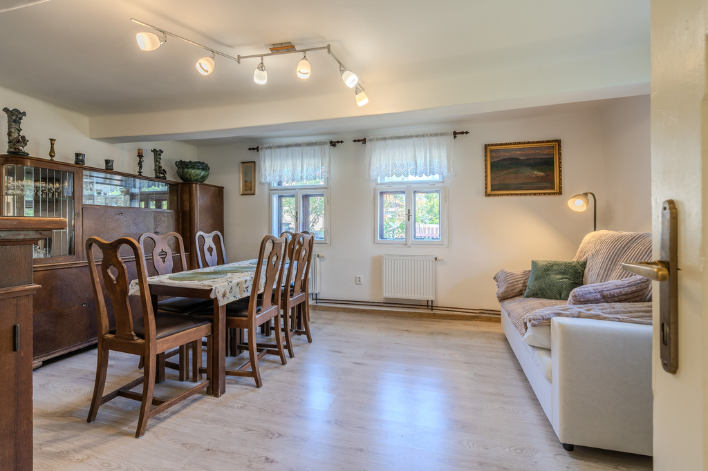 Prodej samostatného rodinného domu v obci Velenice, která se nachází cca 15km od lázeňského města Poděbrady. Část domu prošla velmi citlivou a vkusnou rekonstrukcí, kde vznikla bytová jednotka o dispozici 2+1, zahrnující vstupní prostor spojený s kuchyní, 2 samostatné pokoje, koupelnu a toaletu. K domu včetně všeho příslušenství o zastavěné ploše 204 m2 náleží malebná zahrada, kde se nyní nacházejí vzrostlé ovocné stromy. K domu přiléhá garáž, stodola a další technické místnosti, které je možné doupravit dle svých představ. Je zde možnost rozšíření půdní vestavby. Dům je vhodný k bydlení nebo jako investice na turistické pronájmy, díky své poloze a umístění. Dům se nachází na okraji obce vedle dětského hřiště. Obec nabízí základní občanskou vybavenost (městský úřad, knihovnu, obchod a místní hospodu) a bezproblémovou dopravní dostupnost do nedalekých Poděbrad či hlavního města Prahy. K dispozici ihned.