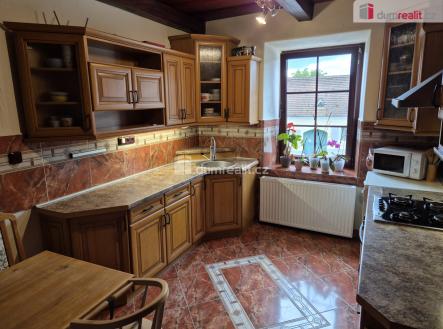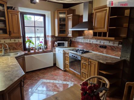 Naše společnost Vám zprostředkuje prodej řadového domu s možností obnovit provoz restaurace Krajta, které se nacházejí v 1.n.p. na velmi zajímavém místě, náměstí J. V. Kamarýta, Velešín. Částečně podsklepený dvoupodlažní dům nabízí v prvním patře prostorný, designově osobitý byt 4+1, kdy tři ze čtyř pokojů jsou neprůchozí a ložnice je napojena otevřeným průchodem na obývák s dekorací z kamene. V koupelně je vana, umyvadlo WC a prostor na pračku. Z centrální chodby je průchod prosklenou stěnou na verandu, ze které je skvělý přehled o dění na zahradě. Dále v podkroví započatou vestavbu, potom zahradu, stodolu a garáž. Bývalou restauraci Krajta se nachází v levé části domu. Je stále téměř plně vybavená, s barem, toaletami a kuchyní, kde v prostoru pro hosty dominují nejenom prvky z kamene, ale především velký funkční krb. Pravá část přízemí s velkou místností, "kuchyňkou" a WC, čeká na zrealizování nějakého zajímavého záměru. V podkroví započala vestavba dalšího obytného prostoru, který můžete dokončit podle svých představ. Voda, elektřina i odpady zavedeny. Za domem je příjemný prostor s posezením u kamenného krbu, se zídkami a nadzemním bazénem, navazujícím na průchozí stodolu a zahradu s přístupem od Jihostroje branou, s pergolou, kotcem pro psa, ovocnými stromy a keři. Nachází se zde také garáž, s vjezdem ze silnice. Dům je svými majiteli průběžně revitalizován, kdy byla v nedávné době třeba vyměněna krytina i krov, v obytné části okna atd. Vytápění a ohřev vody zajištěný moderním tepelným čerpadlem, odpad napojen na veřejnou kanalizaci, voda z řadu. Celková rozloha pozemků činní 901 m², z toho cca 180 m² připadá na zastavěnou plochu domu, cca 99 m² na stodolu a 19 m² na garáž. Město Velešín je klidnou obcí s dojezdovou vzdáleností do Českých Budějovic cca 18 km, do Českého Krumlova cca 15 km a na hraniční přechod Dolní Dvořiště cca 23 km. Má kompletní občanskou vybavenost, včetně střední odborné školy. Výměna za vhodný byt, ideálně ve Velešíně 3-4+1(kk) plus doplatek, po dohodě možná. Kompletní fotogalerie (80) na stránkách zprostředkovatele naše společnost/kejsar. S případným profinancováním hypotékou vám ochotně pomůže náš finanční specialista. Ev. číslo: 652663.