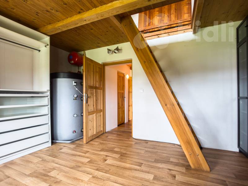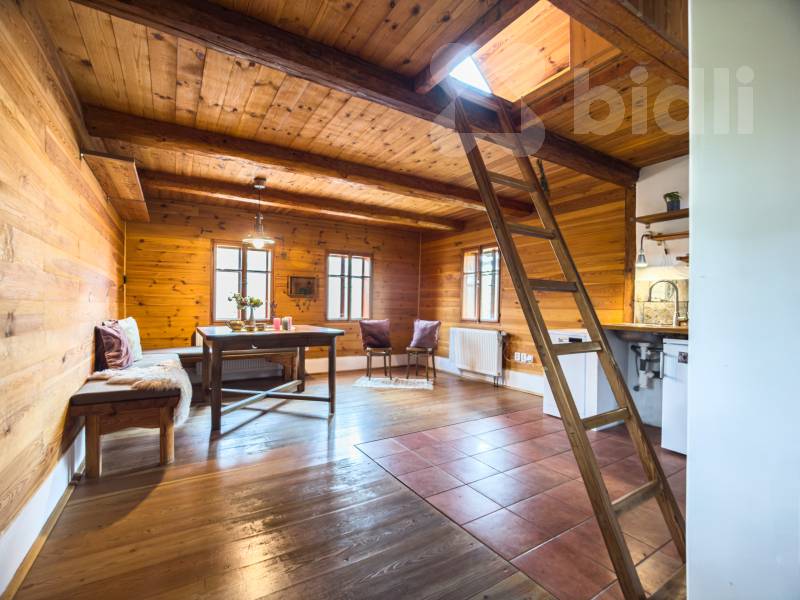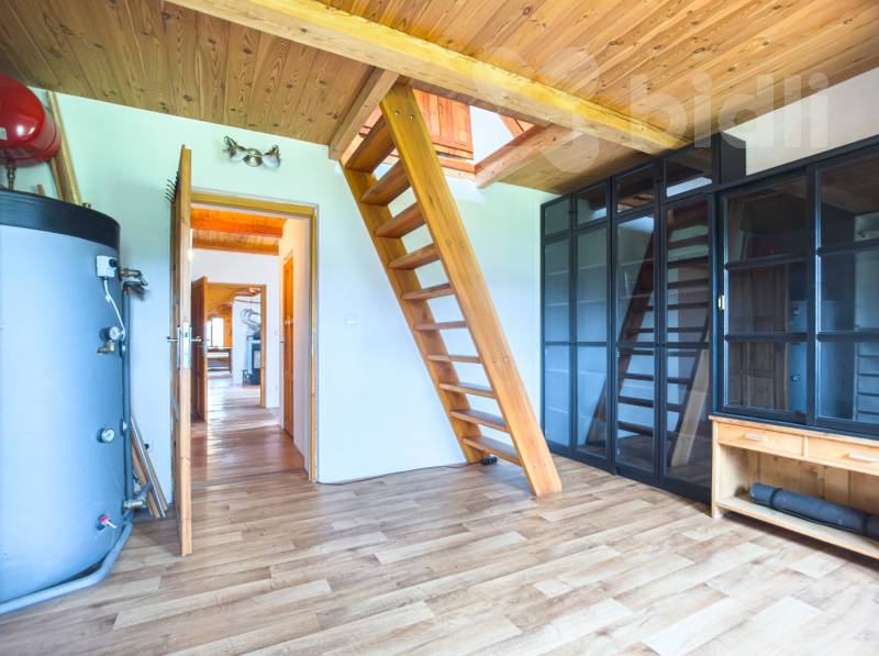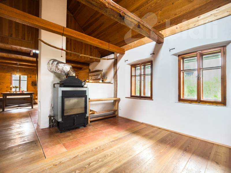 Výjimečná příležitost! V obci Veliny nabízíme zrekonstruovanou poloroubenku 4+kk o 121m2, na velkém pozemku 4485 m2 s přírodní zahradou (od roku 2014) . Možnost rozdělení pozemků a příležitost využít stavební povolení na projekt, který můžete pozměnit. Nízkoenergetická nemovitost loftového typu, s důrazem na detail a energetickou soběstačnost. Celková impregnace včetně silných modřínových prken, podříznutí kovovými plechy, hydroizolace, dostatečné zateplení Liapor a minerální vaty, Vám společně s výkonnými kamny Hoxter s teplovodním výměníkem a 500l akumulační nádrží zajistí vysoký teplotní komfort. Velký dřevník 27m2, nový kurník až na 30 slepic, stáj pro kozy či koně s možností pronájmu sousední pastviny. Skladovací hala, dílna s dostatečným prostorem. A to vše jen hodinu od Prahy, 20min od Pardubic, 2min od Holic PENB C. Pojďte se podívat na místo, které si zamilujete! Začněte žít s přírodou!.