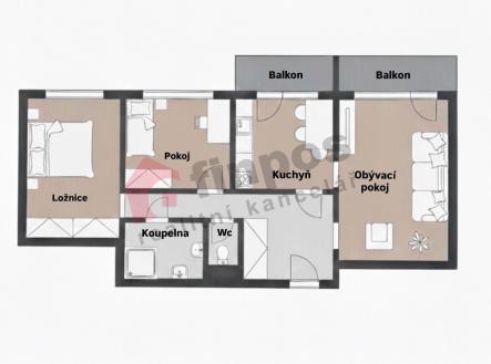 Pronájem bytu 3+1 70 m2 ve Veliši