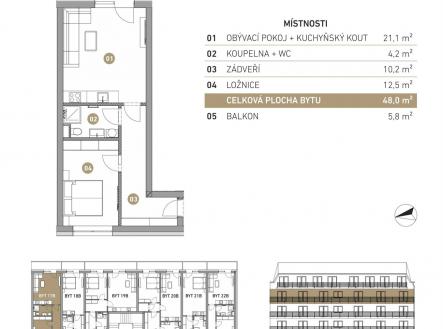 Projekt Byty Velká Bíteš pokračuje další etapou výstavby bytového domu s označením BD04 a nabídne celkem 28 bytových jednotek o dispozicích 1kk a 2kk. Je zde kladen důraz na komfortní bydlení s nízkými provozními náklady, kvalitními materiály a nadčasovým designem. Většina bytů bude disponovat balkónem s pěkným výhledem na přilehlou zeleň a centrum města. Ke každému bytu lze přikoupit sklepní kóje. Pro ty, kteří by chtěli kryté parkovací stání, budeme mít připraveno 7 garážových parkovacích stání v 1. podzemním podlaží. Samozřejmostí je dostatek parkovacích míst v okolí bytového domu. Součástí domu bude moderní výtah pro zajištění komfortní přepravy ať už z přízemí či garážových prostor přímo na patro k jednotlivým bytům, čímž je zajištěn bezbariérový přistup. Předpokládaný termín dokončení je podzim 2027. Uvedený byt: 17B, 4. NP, s podlahovou plochou vč. balkonu 53,8 m2, užitná plocha bytu 48,0 m2 + 5,8 m2 balkón. K bytu je možnost dokoupit: garážové parkovací stání podzemní = 425 600 Kč vč. DPH sklepní kóje = 56 000 Kč vč. DPH Ve standardním provedení každého bytu jsou laminátové podlahy EGGER, obklady a dlažby ABITARE ICON v koupelně a na toaletě vč. sanity (sprchový kout s odtokovým žlábkem, WC, umyvadlo, baterie, zrcadlo s LED podsvícením), interiérové dveře, bezpečnostní vstupní dveře a okna s trojskly. Vytápění zajištěno pomocí elektrického podlahového topení, dále příprava na klimatizaci na JV straně, zvýhodněné nabídky dodání a montáže kuchyňské linky přímo od investora. Bytový dům bude plnit PENB–B. Velká Bíteš je město s rodinnou atmosférou, výbornou polohou a širokými možnostmi pro život i práci. Díky strategické dostupnosti u dálnice D1 se do Brna i Jihlavy dostanete během pouhých 30 minut, což z města činí ideální místo pro všechny, kdo hledají klidné bydlení blízko větších center. Město je zároveň významným průmyslovým centrem. Sídlí zde například společnost PBS, výrobce leteckých motorů, a lokalita bude v budoucnu profitovat i díky plánované výstavbě nových jaderných bloků v Dukovanech. To zvyšuje nejen poptávku po kvalitním bydlení, ale také investiční potenciál nemovitostí. Vznikající bytové jednotky, které jsou ideální pro vlastní bydlení i jako výhodná investice, jsou navrženy s důrazem na nízké provozní náklady, kvalitní materiály a nadčasový design, aby zajišťovaly komfortní a dlouhodobě hodnotné bydlení. Občanská vybavenost je v místě kompletní – školy, školky, obchody, zdravotní péče a další služby jsou snadno dostupné. V bezprostřední blízkosti se navíc připravuje nový městský park, který doplní okolní přírodu a nabídne prostor pro sport, relaxaci a volnočasové aktivity. Sportovní vyžití nabízí hokejový stadión HC Spartak Velká Bíteš a fotbalový klub FC PBS Velká Bíteš. Projekt Byty Velká Bíteš je kombinací komfortu, moderní architektury a strategické polohy. Ať už hledáte vlastní domov, nebo investici s perspektivou růstu hodnoty, tyto byty představují ideální volbu pro současné i budoucí generace.