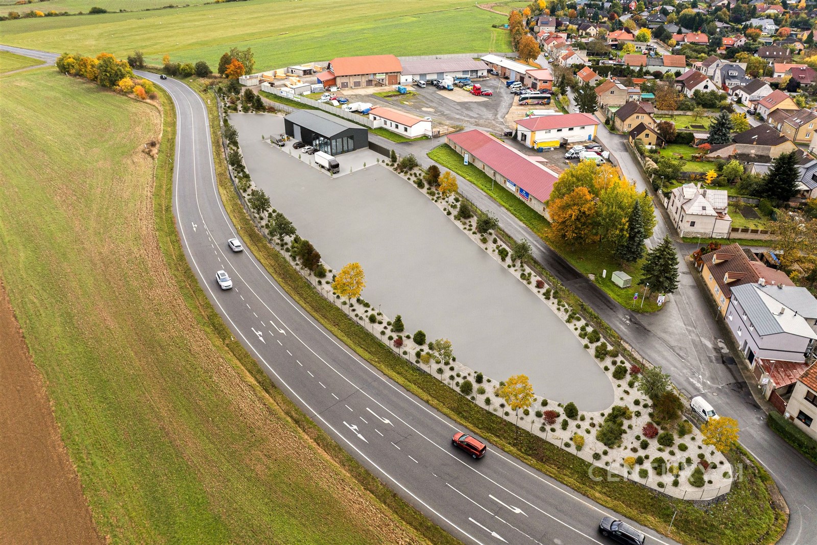 Pronájem oploceného pozemku s novou halou u dálnice D6 – Velká Dobrá, 7.051 m²