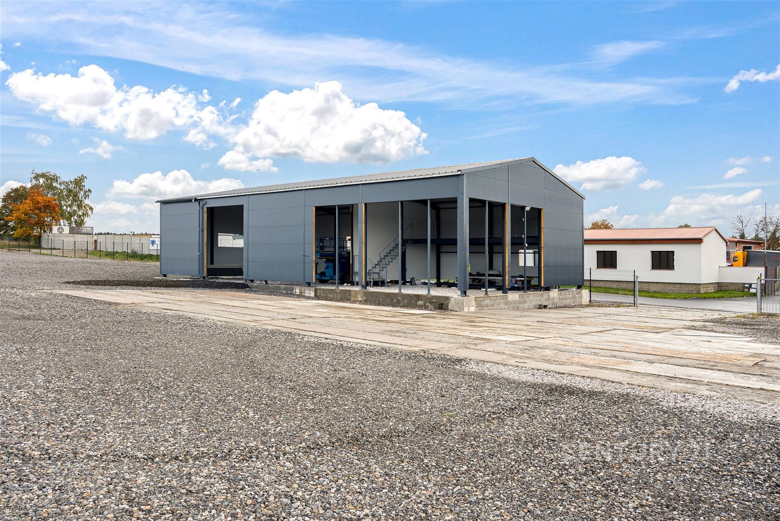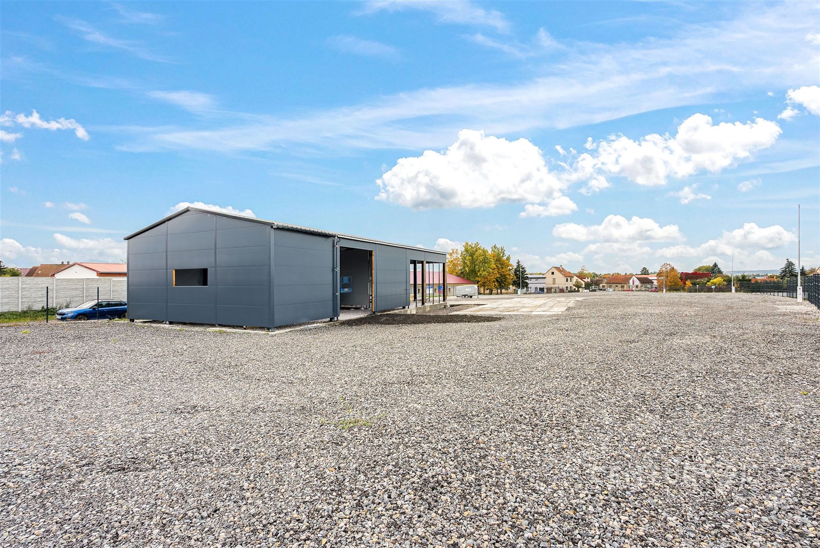 Pronájem oploceného pozemku s novou halou u dálnice D6 – Velká Dobrá, 7.051 m²