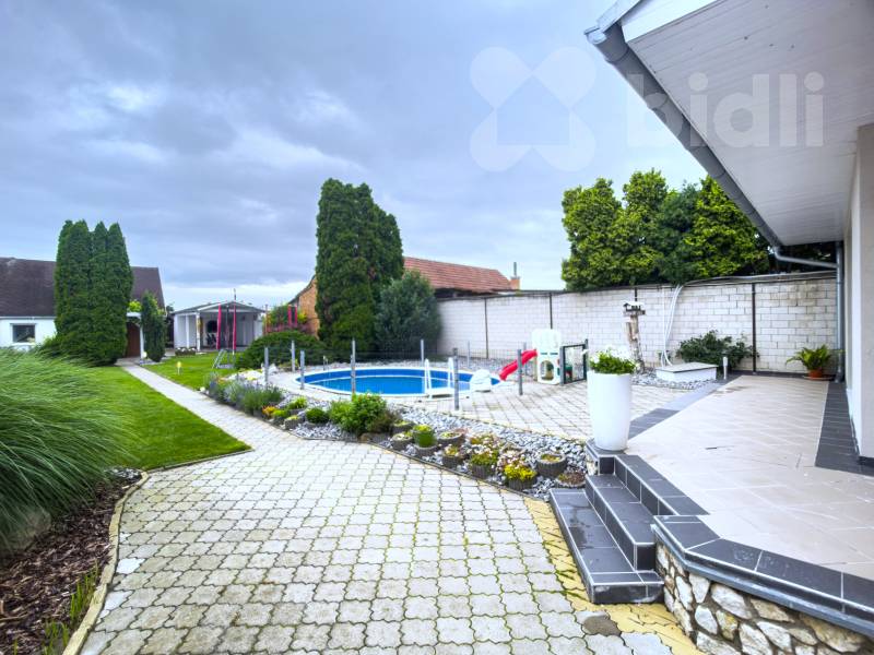 Hledáte kombinaci klidného bydlení, technologické vyspělosti a jedinečné atmosféry jižní Moravy? Tento výjimečný bungalov ve městě Velké Bílovice je i deální volbou pro rodinný život, rekreaci i investici do budoucnosti. Exkluzivně nabízíme prodej mimořádného, energeticky úsporného RD 5+1 a dva samostatné apartmány i vinný sklep, s celkovou užitnou plochou 260 m2, na pozemku 1 057 m2, Velké Bílovice. Nemovitost vyniká kvalitním zpracováním, promyšleným dispozičním řešením a důrazem na nízké provozní náklady. Interiér nabízí nadstandardní jídelnu a kuchyni, ohromný obývací pokoj s přímím vstupem na terasu, dvě prostorné neprůchozí ložnice, praktickou pracovnu, koupelnu s toaletou a další sam. toaletu. Technologie a vybavení pro maximální komfort - Solární elektrárna s přetokem do veřejné sítě - zajišťuje částečnou energetickou soběstačnost a významně snižuje náklady na provoz domu. - Klimatizace v každé místnosti - celoroční tepelný komfort s možností individuální regulace. - Nový plynový kotel - efektivní a spolehlivé vytápění. - Vysoký izolační standard - stabilní a příjemné vnitřní klima, nízká spotřeba energií. Další užitné prostory a jejich možnosti Součástí nabídky jsou: - Dva samostatné apartmány situované nad vinným sklepem - kapacita až 10 osob. Ideální pro návštěvy či pronájem (např. krátkodobé ubytování v turisticky atraktivní oblasti). Zahrada a její přidaná hodnota - Vinný sklípek - místo pro uchování vína a stylové degustace. - Terasa s grilem a udírnou - nerušený odpočinek i zábava v naprostém soukromí. - Zapuštěný bazén s protiproudem - osvěžení a sportovní vyžití ve vlastní oáze klidu. - Vinohrad a ovocné stromy - romantické prvky, které podtrhují kouzlo jižní Moravy a poskytují vlastní oblíbené plodiny. - Automatická sekačka a závlahový systém - profesionální a jednoduchá údržba zahrady. Atraktivní lokalita Velké Bílovice Srdce jihomoravské vinařské tradice, město známé svou přátelskou atmosférou, kulturním děním a kvalitním zázemím. Nabízí: - Školku, školu, zdravotní středisko, obchody i restaurace, fotbalové hřiště, multifunkční sportovní areál i dětské hřiště, kulturní dům, bezpočet služeb pro veřejnost, rybník a mnohem víc. - Klidné a bezpečné prostředí pro rodinný život. - Blízkost přírody, vinohradů a cyklostezek. Výborná dopravní dostupnost - autem i veřejnou dopravou - Dálnice D2 vzdálena jen pár minut jízdy - Brno do 30 minut. - Autobusová doprava zajišťuje spojení s okolními městy. - Železniční stanice v blízkosti s přímým spojením na hlavní dopravní tahy. - Cyklistická infrastruktura - ideální pro rekreační i každodenní cestování po okolí. Zaujala Vás tato nabídka? Rád Vám osobně představím tuto jedinečnou nemovitost, která nabízí harmonické spojení moderního bydlení, praktických technologií a půvabu jižní Moravy. Uvedené výměry jsou přibližné a mají pouze informativní charakter. Energetický štítek nebyl dodán, proto uvádíme třídu G.
