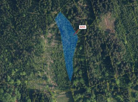 Lesní pozemek o výměře 6125 m2, parcelní číslo 3255, podíl 1/1, katastrální území Velké Hamry, obec Velké Hamry, obec s rozšířenou působností Tanvald, okres Jablonec nad Nisou, Liberecký kraj. Po těžbě.