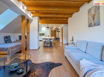 Nabízíme k prodeji pěkný a plně vybavený byt o dispozici 4+kk o užitné celkové užitné ploše 135 m² (včetně podkroví 23 m² a balkónu 8 m²) v oblíbené lokalitě Leskové, obec Velké Karlovice. Tento prostorný a zároveň útulný apartmán kompletně zrekonstruovaný v roce 2018 je vybavený do horského stylu a je v katastru nemovitostí vedený jako bytová jednotka - lze jej tedy financovat hypotečním úvěrem bez omezení. Disponuje třemi ložnicemi (jedna v podkroví), dvěma koupelnami s vanou a sprchovým koutem a dvěma toalety, prostorným obývacím pokojem propojeným s plně vybavenou kuchyní vestavěnými spotřebiči (lednička, myčka, trouba, mikrovlnná trouba, varná deska a pračka) a příjemným balkónem s výhledem do okolní krajiny o výměře 8 m². Součástí prodeje je také vnitřní vybavení jako jsou dřevěné masivní stoly z kartáčovaného dubu, židle, postele z masivu s matracemi (11 ks) a drobné vybavení jako je nádobí, ložní prádlo, spotřebiče a ostatní nábytek. Při použití bytu na investici, je tedy možné začít nemovitost pronajímat bez dalších investic. Chalupa, ve kterém se bytová jednotka je ve velmi dobrém stavu a pravidelně udržována včetně pravidelného natírání chalupy, údržby zeleně atd. Součástí společných prostor je také odkládací místnost na lyže či kolo. Parkování je možné na vlastním parkovacím stání přímo u chalupy. V těsné blízkosti chalupy se nachází několik běžkařských tras, cyklostezky, wellness hotely, lyžařské sjezdovky, turistické trasy, vyhlídky a svěží přírodu. Obec pak nabízí další volnočasové aktivity jako je aquapark, tenisové hřiště, restaurace. To vše dělá z lokality Leskové ve Velkých Karlovicích jednu z nejpříjemnějších a nejvyhledávanějších lokalit v Beskydech. Pro bližší informace volejte kdykoliv. Děkuji moc. Ev. číslo: 32070.