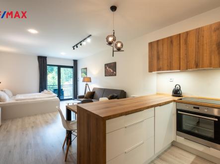 Hledáte klidné místo uprostřed přírody, kde si můžete skutečně odpočinout, nebo chcete zajímavou investiční příležitost? Nabízíme plně vybavený apartmán o výměře 40 m², který se nachází v oblíbené části Velkých Karlovic – Jezerné. Apartmán je dispozičně řešen jako 1+kk a nabízí příjemně vzdušný prostor. Najdete zde praktický kuchyňský kout s jídelní částí, na který navazuje obývací prostor se spaním. Dominantou celého interiéru je velké prosklení s přímým vstupem na terasu a výhledem do okolí. Komfort bydlení zvyšuje prostorná koupelna s toaletou a sprchovým koutem. Dále je k dispozici šatna / technická místnost. K apartmánu náleží sklep a kryté garážové stání. Dům je vybaven výtahem, takže přístup do bytu je pohodlný i bezbariérový. Majitelé mohou rovněž využívat rozlehlý společný pozemek s grilovací a odpočinkovou zónou, která je jako stvořená pro letní večery s rodinou či přáteli. Apartmán je připraven k okamžitému užívání – prodává se plně vybavený. Můžete jej využívat pro vlastní rekreaci, celoroční bydlení, nebo jako investiční příležitost. V domě je možnost využití služeb správy a obsazování apartmánů. Lokalita Jezerné je vyhledávaná pro svou klidnou atmosféru, výbornou dostupnost a krásnou okolní přírodu vč. dominanty - Karlovského jezera. V bezprostřední blízkosti domu se nachází lyžařský vlek, cyklostezka, restaurace, a v širším okolí najdete známé lyžařské areály, běžkařské tratě, venkovní koupaliště, aquapark a spoustu dalších možností sportovního i relaxačního vyžití. Neváhejte se ozvat – tento apartmán nabízí ideální spojení pohodlí, přírody a investičního potenciálu v jednom z nejmalebnějších koutů Beskyd.
