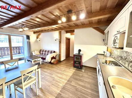 Nabízíme k prodeji výjimečný, kompletně zrekonstruovaný apartmán ve Velkých Karlovicích, který je kolaudován jako ateliér. Apartmán se nachází v centru vyhledávané rekreační zóny, přímo pod lyžařským svahem a v blízkosti hotelu Lanterna. Je ideální jak pro vlastní bydlení, rekreaci, tak i pro investici do pronájmu. Ateliér se nachází v budově se šesti jednotkami, která slouží k vlastnímu užívání i k pronájmu. Tento moderní a velmi útulný apartmán má dispozici 3+kk a podlahovou plochu 58 m². Jeho interiér zahrnuje dvě samostatné ložnice, prostorný obývací pokoj spojený s kuchyňským koutem a přímým výstupem na zahradu, koupelnu s toaletou a praktické zádveří. Apartmán se prodává kompletně vybavený kvalitním nábytkem, což novým majitelům umožňuje okamžité nastěhování a užívání. K apartmánu patří krásný soukromý pozemek o výměře 140 m², který je ideální pro odpočinek, grilování a také dětské vyžití. Pro vaše pohodlí jsou k dispozici dvě parkovací místa a soukromá technická místnost, která může sloužit například k uskladnění sportovního vybavení. Vytápění zajišťuje elektrický kotel, který lze ovládat na dálku, a lokální kamna, která dodávají prostoru příjemnou atmosféru. Voda zajištěna ze studny. Odpady svedeny do kanalizace. Tento apartmán nabízí jedinečnou kombinaci komfortního bydlení v moderním stylu s možností využití vlastní zahrady. Jedná se o velmi žádanou lokalitu - před domem vede cyklostezka, za domem, v zimních měsících běžkařská trasa. V obci najdete bohaté možnosti volnočasového vyžití, včetně golfového hřiště, tenisových kurtů, lyžařských areálů, wellness center, venkovního koupaliště a množství turistických a cyklistických tras. Tato lokalita je ideální pro milovníky aktivního odpočinku i relaxace v přírodě. Neváhejte a přijďte si prohlédnout tuto výjimečnou nemovitost, která vás zaujme nejen svou polohou, ale i kvalitou provedení.
