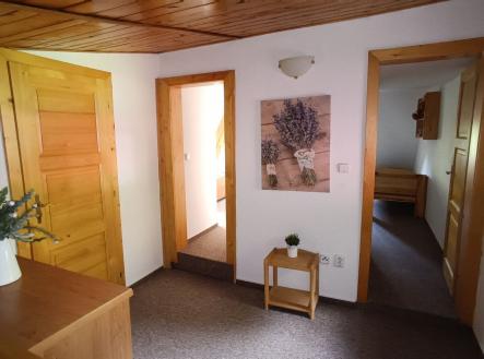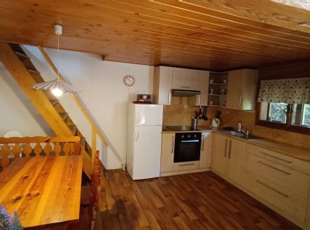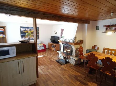 Ve výhradním zastoupení nabízíme k prodeji plně vybavenou chalupu k rodinné rekreaci nebo trvalému bydlení s vysokým potenciálem také k podnikání (objekt je dlouhodobě úspěšně pronajímán v letním období. V zimním období nebylo v zájmu prodávajících chalupu nabízet k pronájmu, potenciál je však vzhledem k lokalitě značný). Kapacita objektu celkem až 10 lůžek. Objekt je samostatně stojící, nepodsklepený, má dvě nadzemní podlaží. Nosná konstrukce je dřevěná roubená a oboustranně obíjená kostra, sedlová střecha, dřevěný krov. Je provedena přípojka elektro NN, vodovod z vlastní studny, kanalizace je svedena do jímky na vyvážení. Celoroční přístup je zajištěn z celoročně udržované zpevněné veřejné komunikace. Vytápění krbem s rozvody vzduchu do místností a elektrickými přímotopy v každém pokoji. Dispoziční řešení: V 1.NP se nachází veranda, sklad nářadí, koupelna (se sprchovým koutem), WC, sauna (6-8 osob), obývací pokoj s vybavenou kuchyní (trouba se sklokeramickou deskou, lednicí, mikrovlnou troubou, varnou konvicí, toustovačem a vším potřebným nádobím) s jídelnou, která ji propojuje s obývacím pokojem s krbem. V obývacím pokoji jsou dvě prostorná rozkládací lůžka, TV, DVD přehrávač) a schodiště do podkroví. V podkroví: Předsíň, 4 x pokoj (8 lůžek). Technický stav: Objekt je užíván od 50-tých let a sloužil původně k trvalému bydlení. V r. 2009 byla provedena první rekonstrukce, kdy byl proveden nový krov, střešní krytina a kompletní rekonstrukce v interiéru. V r. 2015 - 2016 proběhla druhá rekonstrukce, kdy byla provedena výměna kastlových oken za dřevěná s izolačním zasklením, nová kuchyně, nové podlahové krytiny, z části verandy byl proveden sklad nářadí, venkovní zastřešená terasa. Objekt je ve velmi dobrém stavu, plně funkční. Chalupa je svým konstrukčním řešením a vybaveností vhodná jak k trvalému bydlení, tak rekreaci. Celková podlahová plocha objektu činí 112m2 (1.NP 61m2, 2. NP 51m2). Celková plocha pozemku činí 352m2 Chalupa Jezerné se nachází v krásném a malebném prostředí valašské přírody, pod horou Soláň kousek od lesního jezera Jezerné ve Velkých Karlovicích. Pobyt zde umožňuje v létě vynikající podmínky pro pěší turistiku, koupání, cykloturistiku, v zimním období blízkost lyžařských vleků a běžeckých tras. Pozemek nabízí příjemnou míru soukromí. K dispozici je též venkovní koupací sud, gril, houpačka, aj. Zahrada je ohraničena živým plotem a před chatou protéká potůček, přes který vede můstek na příjezdovou cestu, kde se nacházejí parkovací místa. Součástí prodeje je též webová stránka "chatajezerne" jejíž prostřednictvím a dalšími digitálními cestami byl pronájem objektu realizován. PENB G, průkaz ve zpracování. Bližší informace vám poskytneme v RK. Těšíme se na setkání s Vámi na prohlídce.