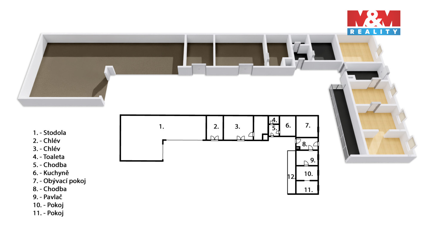 Nabízíme k prodeji rodinný dům ve Velké Roudce u Velkých Opatovic, který spojuje obytné i hospodářské zázemí. Celková užitná plocha domu činí 106 m², doplněná o 193 m² nebytových prostor, kam patří tři chlévy, prostorná stodola, sklep a pavlač. Dispozice domu zahrnuje tři pokoje, obývací pokoj, kuchyň, koupelnu, WC a chodby propojující obytnou část. Vytápění je řešeno krbovými kamny s rozvodem do ústředního topení, ohřev vody zajišťuje bojler. Dům je napojen na veřejný vodovod, odpady jsou svedeny do žumpy. Součástí je i stodola a hospodářské části, které lze využít pro chov, sklad nebo přestavbu. Pozemek o výměře 918 m² tvoří zastavěná plocha a nádvoří. Nemovitost je ideální pro bydlení, rekreaci i hospodářské využití a nabízí široké možnosti úprav, dle potřeb nového majitele. Doporučujeme osobní prohlídku.