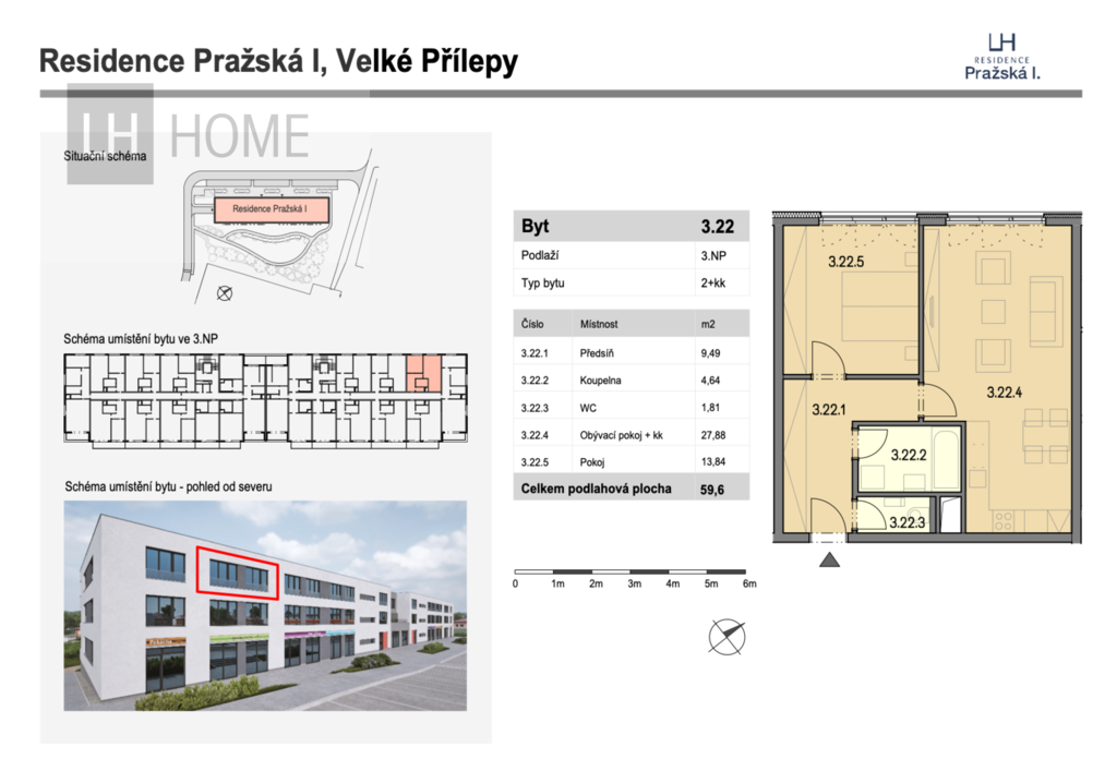 Velké Přílepy jsou oblíbenou lokalitou pro rodinné bydlení díky své blízkosti hlavního města, ale i klidnému venkovskému charakteru. Díky blízkosti Prahy a dobrému napojení na D7 i pravidelnou autobusovou dopravou zajišťující spojení na stanice metra Bořislavka nebo Dejvická. V okolí se nachází řada zajímavých míst, například přírodní rezervace Únětický potok nebo hrady a zámky v okolí, jako je Okoř. Nabízíme k prodeji nový moderní byt 2+KK o výměře 59,6 m2 v atraktivní Residenci Pražská. Byt se bude nacházet v posledním 3. podlaží nízkoenergetické budovy (třída B), orientovaný na severovýchodní stranu. Součástí kupní ceny jsou vinylové podlahy, keramické obklady a dlažby v koupelně a na wc. Vana, skříňka s umyvadlem a zrcadlem, topný žebřík. Oddělená toaleta s umyvadélkem. Interiérové dveře s obložkami - bílé. Součástí každého bytu bude videotelefon. V 1. patře se budou nacházet komerční prostory. Předpokládaný termín dokončení 2Q 2026. Více na stránkách projektu.
