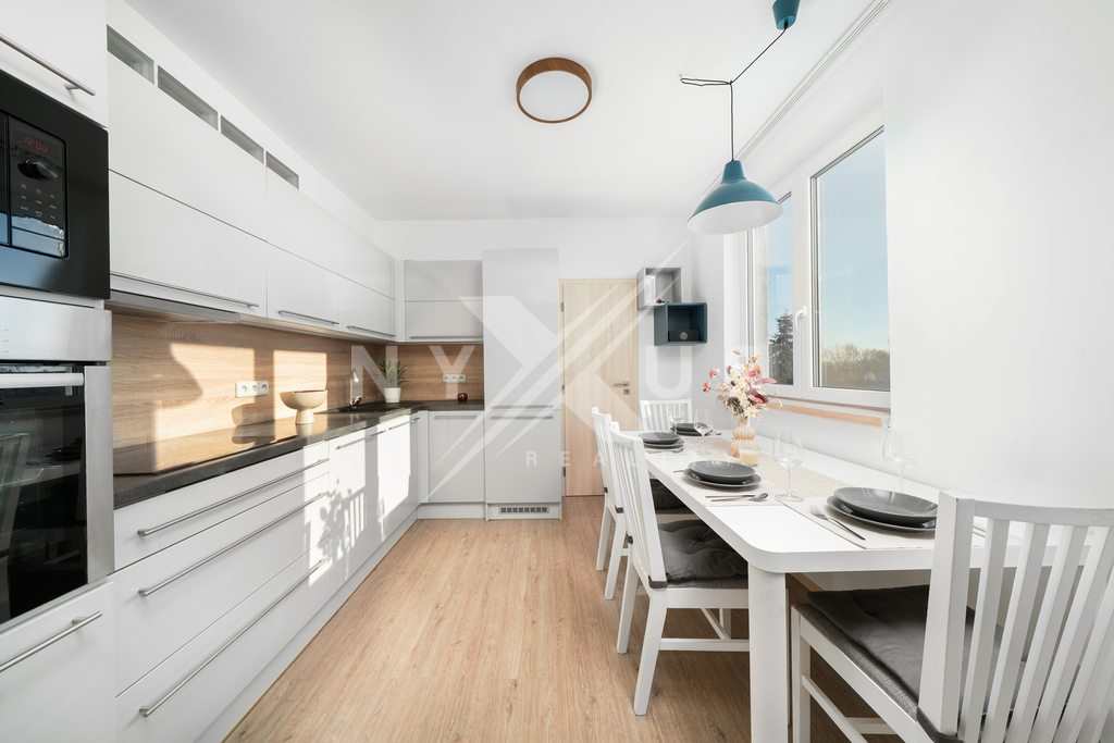 Nabízíme k prodeji prostorný třípodlažní mezonetový byt 5+kk o celkové ploše 132,75 m² ve Velkém Přítočně, ulice U Studánky. Byt je velmi dobře dispozičně řešený a díky třem podlažím nabízí dostatek prostoru i soukromí pro rodinné bydlení. Byt prošel výraznými rekonstrukcemi a je ve velmi dobrém stavu, připravený k okamžitému nastěhování bez nutnosti dalších investic. Součástí bytu je terasa o velikosti 7,70 m² a lodžie 3,90 m², které poskytují příjemný venkovní prostor pro relax i odpočinek. K bytu dále náleží garáž, sklep a praktická komora přímo na patře. Velkou výhodou jsou dvě koupelny, které zajišťují pohodlí pro celou domácnost. V celém bytě je instalováno podlahové elektrické topení. Okna jsou orientována na jih i sever, což zajišťuje dostatek denního světla během celého dne. Rekonstrukce: 2017 – nová kuchyňská linka, podlahy, interiérové dveře a schodiště 2025 – kompletní renovace 3. podlaží (nová koupelna, schody, zateplení) Velké Přítočno nabízí klidné bydlení s výbornou dostupností do Kladna i Prahy, což z něj činí ideální místo pro každodenní život. V případě zájmu o více informací nebo domluvení prohlídky nás neváhejte kontaktovat. Průkaz energetické náročnosti budovy (PENB): třída D. Nemovitost je v osobním vlastnictví a lze ji tedy financovat hypotečním úvěrem, který Vám zdarma pomůžeme vyřídit za nejvýhodnějších podmínek na trhu.
