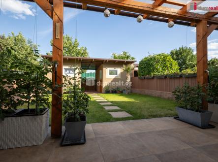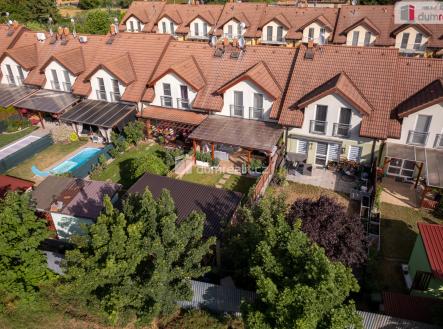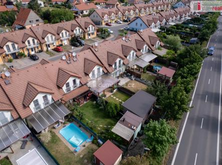 Prodej řadového rodinného domu o dispozici 5+kk, v obci Veltrusy, ulice Lomená. Dům byl postaven v roce 2012 a před dvěma lety prošel kompletní modernizací interiéru a zahrady. Je napojen na veškeré sítě, vytápění plynovým kotlem, nový bojler na ohřev vody. V přízemí domu je prostorná vstupní chodba, ze které se dá vejít do koupelny (sprchový kout a WC), pracovny a obývacího pokoje. Na obývací pokoj navazuje velký kuchyňský kout s moderní kuchyňskou linkou. Francouzským oknem lze pohodlně vstoupit do zahrady, přesněji pod pergolu se zahradním nábytkem. Zahrada je upravená do roviny, oplocená a pečlivě udržovaná. V patře jsou tři pokoje, koupelna a technická místnost s kotlem. Z ložnice a koupelny se dá vstoupit na balkon, který je situován do ulice. Celý interiér je velmi precizně a moderně koncipován: dřevěné obklady zdí, designová tapeta, elektrický krb vyhřívá v případě potřeby celé přízemí a nábytek na míru velmi vkusně doplňuje celkový dojem útulného domova. Majitelé dbali na každičký detail a vytvořili z tohoto domu příjemné a zároveň praktické místo k životu. Důkazem je mimo jiné zahradní domek se saunou a sprchou, sklad s policovým systémem vyrobeným na míru a dále důmyslně umístěný kout na grilování a pěstování zeleniny za zahradním domkem. Veltrusy jsou menší město s veškerou občanskou vybaveností a zároveň jsou turisticky zajímavé pro známý zámek s hojně navštěvovanou zámeckou oborou. Na dálnici D8 dojedete za 5 minut. Přijďte na prohlídku, díky osobnímu jednání je možné dohodnout výhodnější cenu. Neváhjte mne kontaktovat. Ev. číslo: 651665.