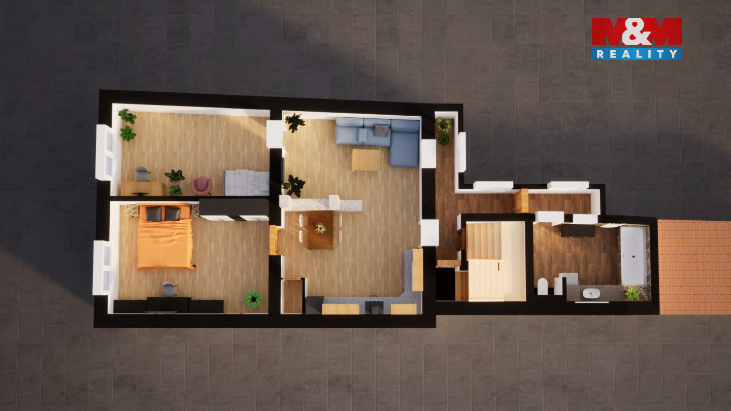 Nabízíme k prodeji výjimečně prostorný a krásně sladěný byt 4+1 o užitné ploše 218 m², který se nachází v rodinném domě. Dům má dvě bytové jednotky, přičemž každá z nich má zcela samostatný vstup. Majitelka druhé jednotky nevyužívá tuto část domu ani zahradu a přichází jiným přístupem - naprosté soukromí. Součástí prodeje je i zahrada a prostorný sklep o výměře 11 m², garáž, zimní zahrada, dílna, menší prostor využívaný jako udírna. Celková atmosféra interiéru je velmi příjemná a nabízí dostatek místa pro rodinný život. Velkým benefitem je krásně řešené podkroví, které si může každý upravit a využít přesně podle svých představ. Byt se prodává částečně vybavený, vše dle dohody s majitelkou. Nemovitost se nachází v centu Velvar s kompletní občanskou vybaveností v docházkové vzdálenosti. Velmi dobrá je také dostupnost do Prahy - 30 minut. Nastěhování je možné až po novém roce, únor–březen, dle dohody s majitelkou. Pro více informací nás neváhejte kontaktovat!