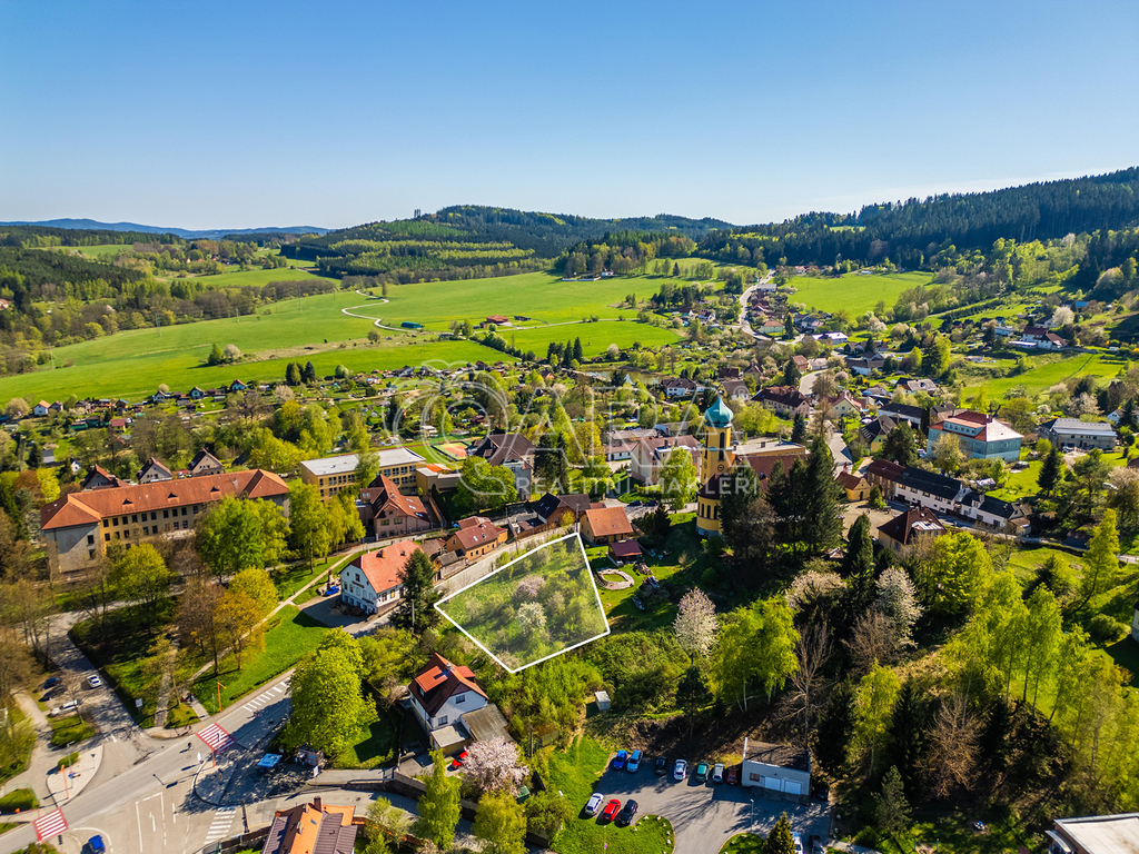 Pozemek (1340 m2) v centru obce Větřní, nedaleko Českého Krumlova!