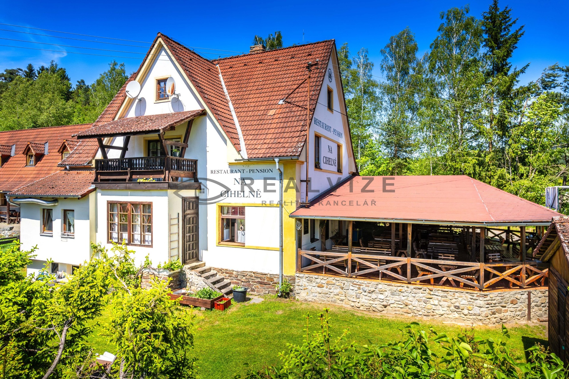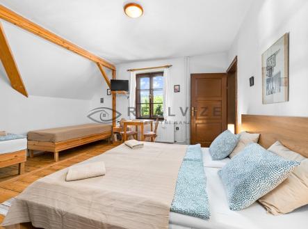 Exkluzivně nabízíme k prodeji tradiční, plně funkční a vytížený penzion s restaurací a bytovou jednotkou, nacházející se na levém břehu Vltavy v oblíbené rekreační lokalitě Nahořany – Zátoň. Místo s nezaměnitelnou atmosférou, výbornou dopravní dostupností, v blízkosti Lipna a rakouských lyžařských středisek Šumavy. Tato nemovitost je ideální investiční příležitostí – generuje stabilní příjem a nabízí široké možnosti dalšího rozvoje. - Počet apartmánů: 3 - Podkrovní byt: 1 (3+kk) - Kapacita penzionu: 11 lůžek - Kapacita restaurace: 42 míst uvnitř, 70 na terase - Vodácká noclehárna: 5 lůžek Dispozice objektu: 1. NP (přízemí): - Stylová restaurace s barem a kapacitou 42 míst - Prostorná krytá terasa s venkovním krbem (cca 70 míst) - Profesionálně vybavená kuchyně se zázemím pro přípravu pokrmů - Skladové prostory - Sociální zařízení pro hosty i personál - Samostatný vstup do penzionu a vstupní hala se schodištěm - Vstup do sklepních prostor (kotelna, sklad paliva, sudárna, další skladovací místnost) 2. NP (1. patro): - Tři vkusně zařízené apartmány s kapacitou 11 lůžek (4+4+3) - Každý pokoj má vlastní koupelnu se sprchovým koutem a WC - Jeden z apartmánů disponuje soukromou terasou s výhledem do krajiny 3. NP (podkroví): Bytová jednotka o dispozici 3+kk s prostorným obývacím pokojem, kuchyňským a jídelním koutem, ložnice, dětský pokoj, koupelna s vanou a WC Dále na pozemku: - Zahradní domek – využíván jako vodácká noclehárna s kapacitou 5 lůžek - Udržovaná zahrada Nemovitost se prodává včetně veškerého zařízení a vybavení a je připravena k okamžitému provozu. Doporučujeme: Ideální příležitost pro ty, kdo hledají investici s okamžitým výnosem v turisticky atraktivní lokalitě.
