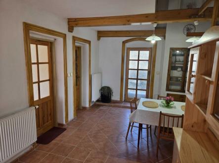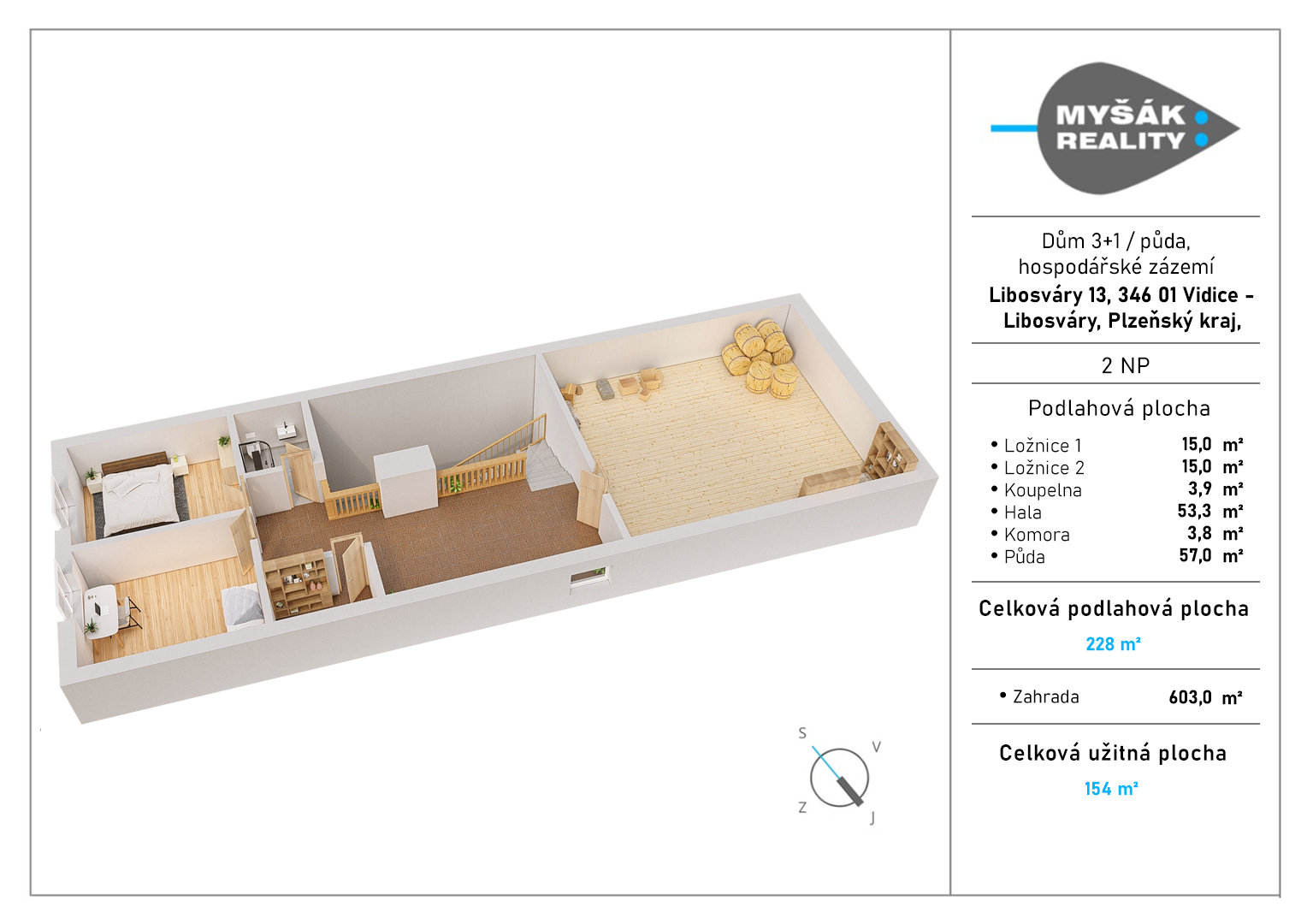 V Libosvárech u Vidic, v klidné části okresu Domažlice, nabízíme poctivý vesnický dům z roku 1974, postavený z kamene a cihel, který dnes skvěle funguje jako chalupa pro rekreaci, stejně tak jako plnohodnotné bydlení pro každodenní život. Dům stojí v příjemném venkovském prostředí, obklopeném přírodou, a zároveň nabízí velmi dobrou dostupnost jak do Plzně, tak směrem do Německa, což z něj dělá zajímavou volbu i pro ty, kteří chtějí bydlet mimo město, ale zůstat dobře napojeni. Nemovitost má zastavěnou plochu 147 m², podlahovou plochu 154 m² a užitnou plochu cca. 295 m². Pozemek o celkové výměře 757 m² poskytuje dostatek prostoru pro odpočinek, posezení i běžné fungování kolem domu. Momentálně je dům dispozičně řešen jak 3+1. V přízemí se nachází dispozice 1+1+hala – obývací pokoj, samostatná kuchyň, koupelna s vanou, samostatné WC, hala se schodištěm do patra. První patro nabízí halu, dva pokoje, koupelnu se sprchovým koutem a WC a menší skladovací prostor. Významnou část tohoto podlaží tvoří půda, která je zatím v syrovém stavu, ale nabízí velký potenciál pro rozšíření obytné plochy, vytvoření dalších pokojů, pracovny nebo třeba samostatné části pro hosty. Dům má vlastní bio čističku odpadních vod. Vodu do domu zajišťuje kopaná studna na pozemku. Vytápění je řešeno ekologickým kotlem Vulkán 33kW s dávkovačem na tuhá paliva, který rozvádí teplo do radiátorů a zároveň zajišťuje ohřev teplé vody. Přízemí (mimo obývacího pokoje) nabízí podlahové vytápění. Nemovitost je plně funkční a připravená k okamžitému užívání. Vnitřek domu prošel rekonstrukcí, při které byl kladen důraz na kvalitu provedení a zachování charakteru stavby. Najdete zde kvalitní podlahy, dřevěné trámy, dřevěná okna, nové omítky a masivní schodiště. V celém domě jsou udělány nové elektrické rozvod. Interiér působí autenticky, příjemně a nadčasově, bez nutnosti dalších zásadních investic. Tato nemovitost je ideální volbou pro ty, kteří hledají klidné místo pro víkendový odpočinek, ale zároveň chtějí možnost plnohodnotného celoročního bydlení. Kombinace prostoru, kvalitního provedení, potenciálu do budoucna a dobré dostupnosti dělá z tohoto domu velmi zajímavou nabídku. Cena nemovitosti činí 3 600 000 Kč vč. provize RK.