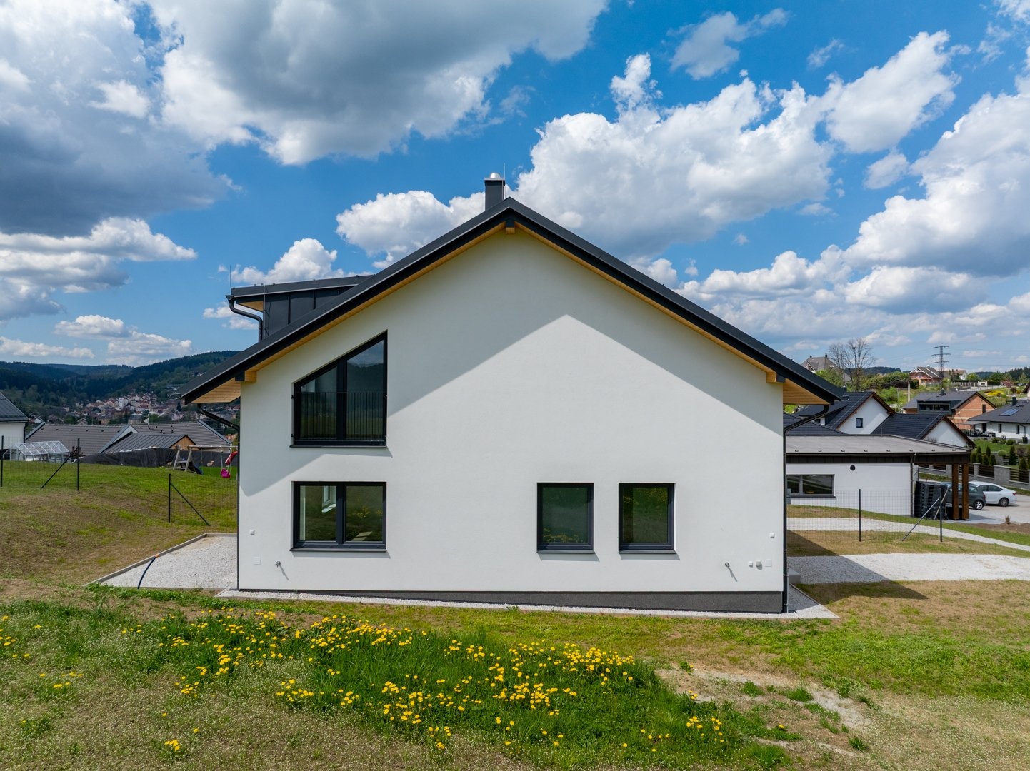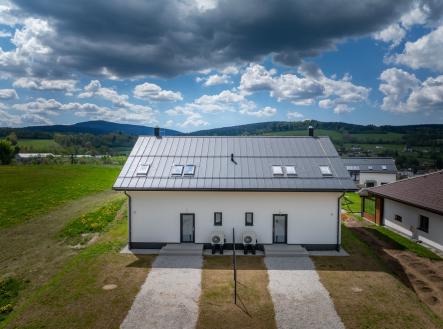 Hledáte nový směr? Místo, kde můžete zpomalit, najít rovnováhu a žít blíž přírodě, aniž byste museli obětovat pohodlí moderního života? Tahle polovina nového cihlového dvojdomu z roku 2024 může být přesně tím startem, který hledáte. Ideální pro ty, kdo pracují odkudkoli, chtějí více volnosti, klidu a čerstvého vzduchu — a přesto chtějí zůstat v kontaktu s městem. Dům stojí na kraji obce, kde končí silnice a začínají louky, lesy a čistá šumavská příroda. Co získáte? - Dům o dispozici 5+kk a užitné ploše 130 m² — dostatek prostoru pro rodinu, práci i koníčky. - Soukromou zahradu 564 m², která nabízí absolutní klid, soukromí a prostor pro relaxaci i hry dětí. - Pokoj pro hosty nebo pracovna v přízemí hned za vchodem do domu. - Dvě koupelny - v přízemí se sprchovým koutem, v patře s vanou. - Podlahové vytápění v celém domě a komín na krbová kamna v obývacím pokoji. - Dvě vlastní parkovací místa s přípravou na nabíjení elektromobilu. - Panoramatický výhled na Boubín — každý den připomíná blízkost Šumavy. - Špičkové odhlučnění mezi oběma polovinami dvojdomu zaručuje maximální soukromí. - Úsporný provoz díky tepelnému čerpadlu, retenční nádrži a přípravě na fotovoltaiku. - Hotové koupelny, toalety i podlahy — stačí se nastěhovat a doladit detaily podle svého. Promyšlené řešení, klidné bydlení Každá polovina dvojdomu má vlastní kanalizační přípojku, vodoměr i podlahové vytápění v celém domě. Tři pokoje nabízí výhled na šumavský Boubín a rohový pokoj s lomenými okny navíc odkrývá panorama Vimperka. Prostor, který působí svěže a příjemně — ideální pro nový životní rytmus. Klid na konci ulice, služby na dosah Dům leží na samém okraji zástavby, přímo u přírody. Jen 3 minuty autem od domu je RETAIL PARK VIMPERK, takže nákupy máte doslova za rohem. Do centra Vimperka to máte pár minut, a když se budete chtít projít, 500 m nad domem se tyčí Velká Homolka s fantastickým výhledem na celé město. Šumava, lesy, traily, louky — vše kousek od vašeho nového domova. Zavolejte mi a domluvte si prohlídku. Tenhle dům může být vaším novým začátkem.
