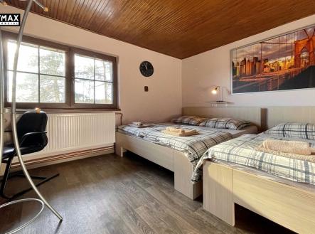 Rekreační areál se nachází v malebné obci Křesanov, nedaleko města Vimperk, na Šumavě. Tento multifunkční objekt je ideální jak pro krátkodobé ubytování, tak pro firemní zázemí či další využití podle Vašich představ. Hlavní přednosti: • Lokalita: Areál se nachází v klidné obci Křesanov, pouhé 3 minuty jízdy od Vimperka. Skiareál Zadov je vzdálený 15 minut, na Kvildě jste za 20 minut. • Rozmanité využití: Vhodný pro provoz jako penzion, ubytovací zařízení či firemní areál. Možnost rozšíření ubytování o domek majitele nebo další aktivity (např. hřiště) na přilehlém pozemku. • Zajetý provoz a vybavení: Kompletně vybavené prostory a zajetý provoz nabízejí pohodlné převzetí pro budoucí majitele bez dalších nutných investic. Areál má také výbornou pověst – aktuální hodnocení na platformě Booking je 9,7/10. Areál: • Hlavní rekreační budova nabízí kapacitu až 20 lůžek. V přízemí se nachází vstupní zádveří, kuchyně, společenská místnost, koupelny, lyžárna a technické zázemí. V patře je pět samostatných pokojů. Budova je částečně podsklepená. • Domek pro majitele o dispozici 3+1 obsahuje vstupní zádveří, obývací pokoj, dva samostatné pokoje, kuchyň a koupelnu. Konstrukce z kamene, moderní vytápění a dřevěná okna zajišťují komfortní bydlení. • Celková plocha kompletně oploceného pozemku činí 868 m². Na pozemku se nachází zamykatelný zahradní domek, kryté posezení, dětské hřiště a pingpongový stůl. Parkovací místa jsou umístěná přímo na pozemku. Součástí prodeje je další přilehlý pozemek o velikosti 314 m² s travním porostem, který nabízí prostor pro rozšíření areálu. Technické parametry: • Hlavní budova i domek pro majitele jsou napojeny na veřejný vodovod. Odpad je sveden do bezúdržbového moderního tříkomorového septiku a následně do pískového filtru a vsaku. • Vytápění hlavní budovy zajišťuje krb s výměníkem napojeným na radiátory (společenská místnost, pokoje), dále elektrické podlahové vytápění nebo přímotopy (kuchyně, chodby, koupelny, pokoje). Domek je vytápěn pomocí kachlových kamen + dálkově ovládané elektrické podlahové vytápění. • Hlavní budova je zděná, domek pro majitele je převážně kamenný. Obě budovy mají dřevěné konstrukce sedlových střech se skládanou krytinou a dřevěná okna s izolačními dvojskly. Lokalita: Křesanov je poklidná šumavská obec pár minut jízdy od města Vimperk. Milovníci sportu a volnočasových aktivit v přírodě ocení blízkost oblíbených skiareálů Zadov a Kvilda, kde jsou skvělé podmínky pro zimní sporty i letní turistiku. V okolí najdete hustou síť cyklostezek, pěších tras a příležitostí k houbaření. Závěr: Tento rekreační areál je jedinečnou investiční příležitostí. Pro více informací nebo sjednání prohlídky nás neváhejte kontaktovat. Rádi Vám poskytneme detailní informace. Prodávající si vyhrazuje právo vybrat kupujícího na základě jím zvolených kritérií.