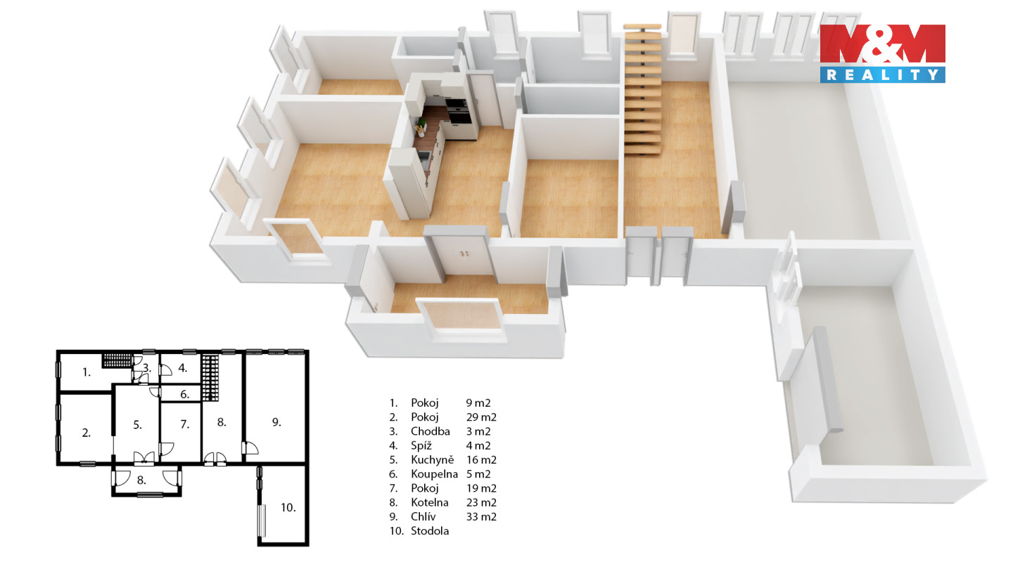 Nabízíme k prodeji rodinný dům situovaný v malebné a klidné části obce Vinary u Vysokého Mýta. Nemovitost se nachází na pozemku o výměře 1 106 m², což zajišťuje dostatek soukromí, klid pro bydlení i podnikání. Dům je ve stavu před rekonstrukcí a je ideální příležitostí k realizaci vlastních představ o bydlení nebo podnikatelském záměru. Disponuje užitnou plochou 85 m², rozdělenou do čtyř místností. Konstrukce domu je smíšená a rozsáhlé nebytové prostory stodoly, chléva a kotelny nabízí široké možnosti využití – například pro podnikání, dílnu či skladování. Součástí nemovitosti je vlastní studna a prostorná půda, která poskytuje potenciál k vybudování další obytné plochy a rozšíření domu dle individuálních potřeb nového majitele. Pro více informací nebo sjednání osobní prohlídky nás neváhejte kontaktovat. Rádi pomůžeme se zajištěním financování.