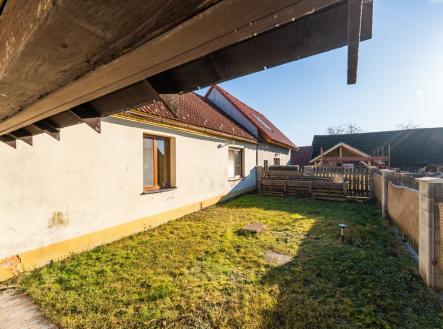 Prodej částečně rekonstruovaného a modernizovaného, prostorného a příjemně dispozičně řešeného RD s garáží, nádvořím a se zahrádkou se zahradním domkem a pergolou, situovaný v klidné okrajové části obce Vitín, okr. Č. Budějovice, obec ve velice dobré dopravní dostupnosti od Českých Budějovic, Ševětína, Veselí nad Lužnicí a Tábora. RD s nádvořím, udržovaný a částečně rekonstruovaný a modernizovaný, příjemně dispozičně řešený, v členění 4+kk s obsáhlým příslušenstvím, s garáží a s možností půdní vestavby, nádvoří s vjezdem, zahradní domek s pergolou, menší zahrada. Stručný popis dispozice RD: vstupní místnost s oknem, prostorná ložnice s oknem do ulice, menší chodba, prostorná koupelna s vanou, umyvadlem a se sprchovým koutem, okno do ulice, technická a skladová místnost s tepelným čerpadlem, hlavní obytná místnost s kuchyňským koutem, s jídelním prostorem a s obývací částí, okno do nádvoří, přístup z garáže přes vstupní místnost z garáže, v hlavní obytné místnosti rovněž vstup do půdního prostoru, středová chodba, šatní místnost, samostatné WC, obývací pokoj s oknem do zahrady průchozí do větší ložnice s oknem do zahrady, garáž spojená vstupní místností s hlavní obytnou místností. Pozemek: celý evidovaný jako zastavěná plocha a nádvoří, nádvoří s vjezdovou bránou a s parkovací plochou, skladovací kůlna, zahradní domek s pergolou, menší zahrada za domem. Nemovitosti napojené na el, vodovod, kanalizace, plyn. Plyn pouze na vaření, k vytápěno tepelným čerpadlem vzduch/vzduch, ohřev vody bojler. Doporučuji: stavba bez nutnosti zásadních stavebních oprav a úprav, žádaná lokalita, příznivá cena. Veškeré info u makléře zakázky.