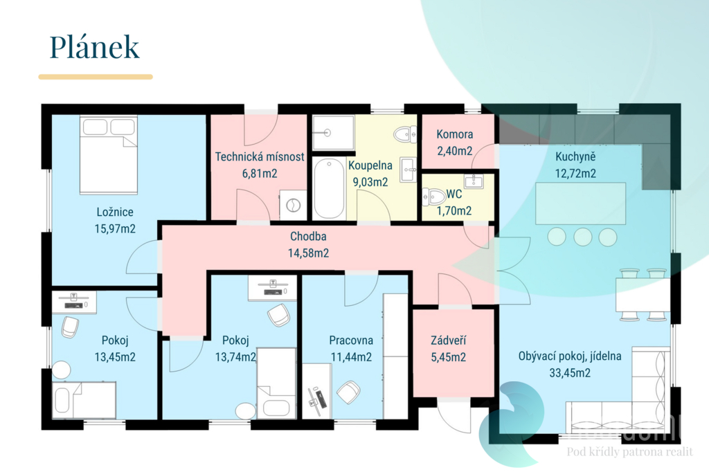 Hledáte místo, kde děti budou vyrůstat v bezpečí, klidu a zeleni, a vy si po práci skutečně odpočinete? Právě nyní je na prodej prostorný a prakticky řešený bungalov 5+kk o užitné ploše 142 m² v obci Vitín, jen kousek od Českých Budějovic. To vše na velkém pozemku o rozloze 1 992 m², který nabízí nekonečné možnosti pro rodinný život, ale i domácí mazlíčky. Hned po vstupu do zádveří odložíte kabáty a boty a projdete do chodby s praktickým samostatným WC. Srdcem domu je světlý obývací pokoj s moderní, plně vybavenou kuchyní, kde se bude odehrávat většina rodinných chvil. V zimě doplní atmosféru krbová kamna, v létě si vychutnáte kávu nebo grilování na terase (35m²) s výhledem do rozlehlé zahrady. u terasy s markýzou na ovládání se nachází skalka s jezírkem. Z centrální chodby se dostanete do pracovny (11,5 m²) – ideální pro home office nebo pokoj pro hosty. Dále do prostorné koupelny (9 m²) s vanou, sprchovým koutem a WC, Klidný spánek budet mít v ložnici (16 m²). Hned vedle vejdete do dětského pokoje (13,5 m²) – děti budete mít vždy na dosah. A do poslední místnosti, která poslouží pro hosty nebo pro děti. Technická místnost (7 m²) se samostatným vstupem. Nachází se zde plynový kondenzační kotel, který ohřívá i vodu, pračka, sušička, centrální vysavač, regály. Půda je pochozí a skýtá úložné prostory. Vytápění je plynem. V obývacím pokoji, koupelně a chodbě je podlahové topení, v ostatních místnostech jsou radiátory. Na pozemku se nachází dvougaráž o velikosti 54 m², ideální nejen pro parkování, ale i jako dílna nebo sklad. Na pozemek se vjíždí přes posuvná vrata. Na druhém konci zahrady se nachází nadzemní bazén. Dešťová voda je svedena do nádrže o velikosti 6 m3. Vitín je obec s přátelskou atmosférou. V pěší dostupnosti najdete autobusovou zastávku, obecní úřad a knihovnu, hospodu, fotbalové hřiště, koupání v místním rybníku Ve 2 km vzdáleném Ševětíně je kompletní občanská vybavenost – školy, školky, obchody i lékaři. Milovníci pohybu ocení cyklostezky a pěší trasy v okolní přírodě. Tento dům není jen nemovitost. Je to místo, kde vznikají rodinné vzpomínky. Ráda vám ho osobně představím – možná právě tady začíná váš nový domov. Uvedené výměry jsou orientační. Veškeré zveřejněné údaje v tomto inzerátu mají pouze informativní charakter.