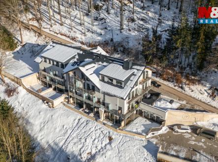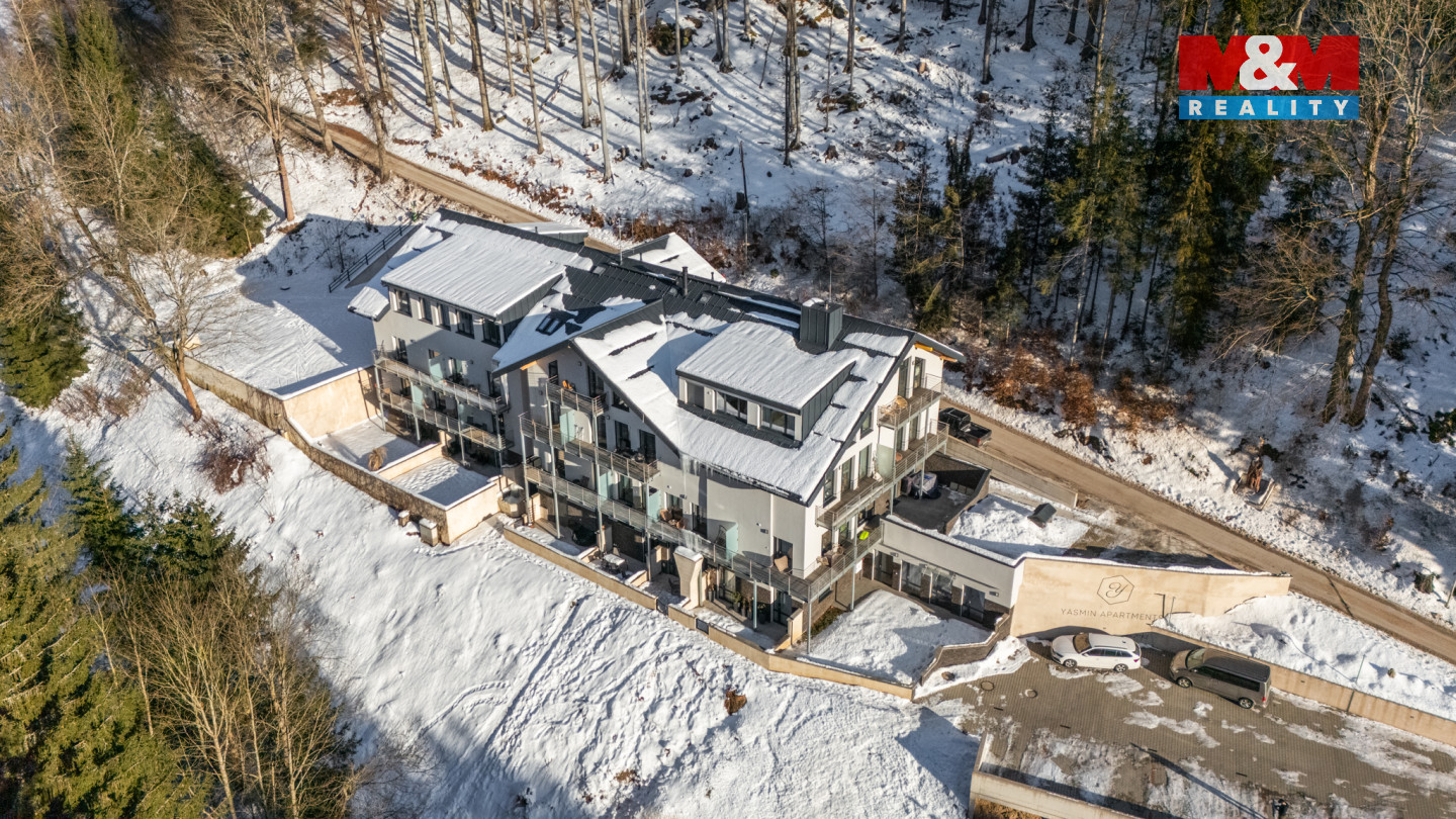 Nabízíme stylový, elegantní a plně zařízený apartmán v Krkonoších v nové rezidenci Yasmin Apartments s pouhými 28 jednotkami. Apartmán je v přízemí, má samostatný vchod, předzahrádku s terasou a elektronické zabezpečení. K dispozici je parkovací stání vedle apartmánu a sklep. Interiér byl vyroben na zakázku s unikátními ručně zpracovanými dubovými prvky. Koupelna zaujme velkoformátovou dlažbou, má podlahové topení a přípravu na pračku. Nechybí důležitá samostatná šatna ani předsíň s vestavěnou skříní. Apartmán je zároveň výbornou investicí díky možnosti zajištění krátkodobých pronájmů přímo správcem objektu, o který se navíc celoročně stará domovník. Objekt z r 2023 je u lesa nad pstruhovým potokem a je ve výborném stavu. Lokalita potěší sportovce – 5 minut chůze je ski areál Aldrov, cyklostezky i běžecké tratě jsou u domu, lyžování ve Špindlerově Mlýně - Mísečky - je cca 12 minut autem. Přijeďte se podívat - nebudete litovat. Pro prohlídku a více informací mě, prosím, kontaktujte.