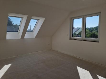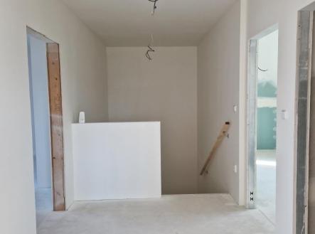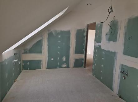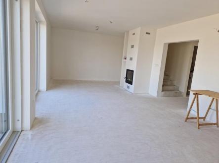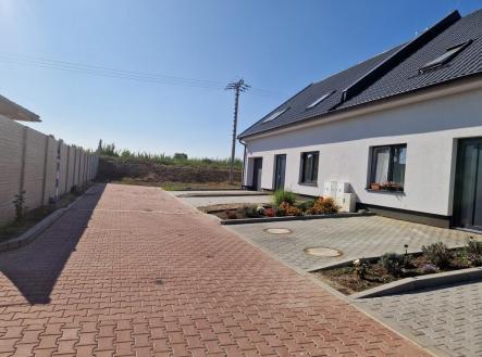 Prodej novostavby rodinného domu 5+kk s garáží a zahradou ve Vlasaticích, okres Brno – venkov. Jedná se o koncový dům v klidné ulici s výhledem na místní zámek, kolaudovaný v dubnu 2023 s možností parkování pro další 3 auta na vlastním pozemku před domem. Celková plocha pozemku 818 m2, zastavěná plocha 112 m2, zahrada 670 m2, užitná plocha domu 187 m2. Dům je zděný (ytong) se sedlovou střechou, nepodsklepený, zateplený, plastová okna trojskla, střešní dřevěná - poplastovaná okna VELUX, elektrický kotel a zásobník na ohřev vody, podlahové vodní topení, v obývacím pokoji krbová kamna s rozvodem teplého vzduchu do jednotlivých pokojů v patře s možností následné regulace pro každý pokoj, podlahové topení se také reguluje v každé místnosti elektronickým termostatem. Přichystán kompletní rozvod vč.rozvaděče pro fotovoltaiku s vyvedením prostupu až na střechu domu. Do domu přiveden optický kabel pro internet, rozvod internetu po celém domě. Zabezpečovací systém + rozvod pro kamerový systém monitorující okolí domu. Dům není zcela dokončen. Konečný design jsme ponechali na výběru nového majitele. V domě chybí: finální povrch podlah (nyní broušený anhydrid), obklady, sanita (vana, umyvadlo, WC), parapety, zárubně, interiérové dveře. Dispozice: Přízemí (103,7 m2): garáž 21 m2 s umyvadlem, odvětráním, alarm pomocí magnetu na dveřích, zádveří 9 m2, pokoj 12,7 m2, WC se sprchovým koutem a umyvadlem 3,1 m2, komora – technická místnost pod schody 5 m2, chodba 5,8 m2, obývací pokoj s kuchyňským koutem 37,8 m2, komora 7,1 m2 přístupná z garáže, kuchyně a zahrady se samostatným rozvodem elektřiny pro zahradu. 1.patro (83,6 m2): chodba 7,3 m2, koupelna 11,9 m2 – připraveno na: vanu, sprchovým kout (box), 2 umyvadla, vývod na pračku a sušičku, samostatné WC s umyvadlem 2,1 m2, 2x pokoj 23 m2, 20,7 m2 se střešními okny a klasickým oknem ve štítové zdi a 1x pokoj 18,5 m2 pouze se střešními okny. Veškeré inženýrské sítě – elektřina 220/380V, obecní vodovod, splašková i dešťová kanalizace. Dešťová voda je svedena do nádrže na zahradě (možnost zalévání, čerpadlo). Zahrada je do tvaru L, vykolíkovaná, neoplocená, zpevněný terén na terasu, vyvedena voda i elektřina, na celém pozemku navezena ornice. K dispozici po dohodě (ihned), není zatížen žádným zástavním právem, možnost financovat hypotečním úvěrem. V případě koupě domu na firmu, možný odpočet DPH. Dostupnost z Vlasatic do Brna je 20 min autem nebo 30 min autobusem a 10 min od Městys Pohořelice. Jsou i příjemným místem pro odpočinek a relax, 8 km od Novomlýnských nádrží. V obci je veškerá občanská vybavenost - obecní úřad, mateřská školka, základní škola, pošta, restaurace, cukrárna, obchod COOP. Odměna zprostředkovatele není zahrnuta v uvedené ceně.