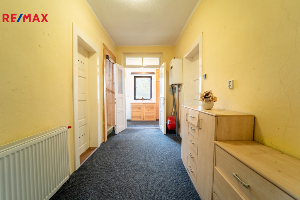 Exkluzivně nabízíme k prodeji samostatně stojící rodinný dům 4+1 se zahradou o rozloze 845 m2 v obci Vlkaneč, která leží v malebné krajině na pomezí Středočeského kraje a Vysočiny. Vlkaneč je přátelská, klidná obec s dobrou občanskou vybaveností. Najdete zde základní a mateřskou školu, obchod, poštu, obecní úřad i knihovnu. Díky vlakové zastávce přímo v obci je zajištěno pohodlné spojení do větších měst - směr Havlíčkův Brod, Čáslav, Kolín či Praha. Obec je obklopena čistou přírodou, loukami a lesy, ideální pro bydlení s dětmi. V okolí domu probíhá výstavba novostaveb, což svědčí o rozvíjející se lokalitě. V obci žije aktuálně přes 400 obyvatel. Dům stojí na samostatném pozemku se zahradou s ovocnými stromy a kopanou studnou. Je přímo přístupný z obecní komunikace, což zajišťuje snadné napojení na infrastrukturu (kanalizace, vodovodní řád, elektřinu, internet). Dům je postaven z kombinace cihly a kamene, střecha je stanová, valbová s taškovou krytinou. Okna jsou plastová a částečně původní. Dispozice domu je praktická: přízemí - vstupní předsíň, chodba, tři obytné místnosti, kuchyňka, koupelna s toaletou a technická místnost. Po dřevěném schodišti se dostanete na půdu do prvního patra, kde se nachází další obytná místnost. Půda je vhodná k rekonstrukci a nabízí možnost rozšíření obytného prostoru, dle vlastních představ (dvě místnosti a sociální zázemí). Vytápění zajišťuje elektrokotel s expanzní nádobou, voda je ohřívána rovněž přes elektrokotel. V domě jsou dva komíny, z nichž jeden je využíván pro krbová kamna na dřevo, která dodávají domovu příjemnou atmosféru a výhřevnost. V ostatních místnostech jsou instalovány radiátory, které jsou vytápěny elektrokotlem. Podlahy tvoří dlažba a koberce. Tento dům představuje zajímavou příležitost pro trvalé bydlení i rekreační využití. Nabízí klidné prostředí, krásnou okolní přírodu a zároveň výbornou dopravní dostupnost. Místo, kde se můžete nadechnout, zpomalit a vytvořit si domov podle svých představ. Okolí obce Vlkaneč nabízí pestré možnosti volného času. Najdete zde cyklotrasy, pro pěší stezky ideální pro výlety do přírody a houbaření. Nedaleko se nachází ranč s koňmi, kde je možné se zapojit do místních aktivit. Aktuálně probíhá rozdělení a zaměření pozemku, kdy majitel si ponechává část zahrady s vlastním přístupem z obecní komunikace. Majitel si vyhrazuje právo aukce.