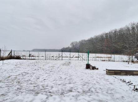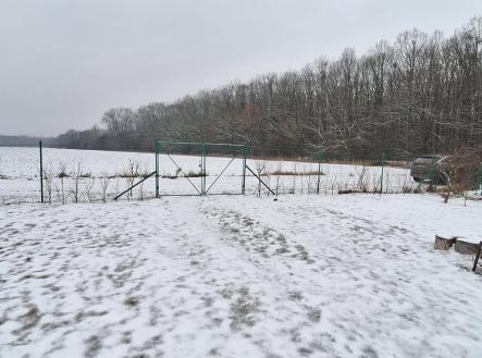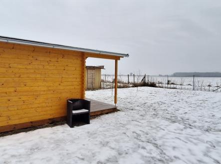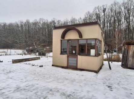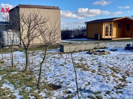 Prodej zahrady 414 m2 se zahradním domkem s terasou v klidné části obce Vnorovy