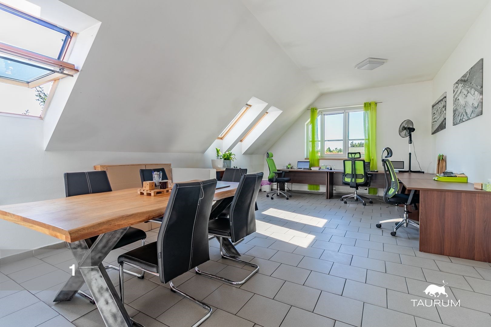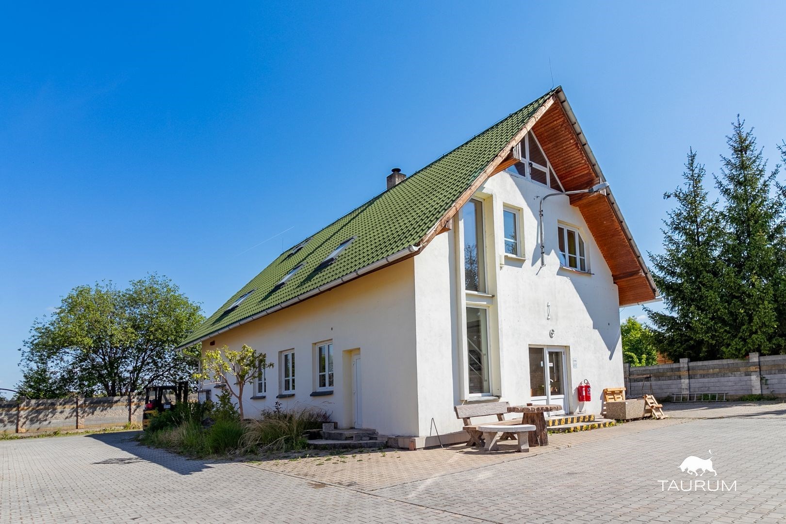 Představuji k prodeji provozní areál se zpevněnou plochou a administrativními, výrobními a skladovacími prostory na adrese Vojkovice 161 u Kralup nad Vltavou. Lokalit a: Areál o celkové ploše pozemku 12.027 m2 je přístupný po asfaltové silnici přibližně 10 minut jízdy od Kralup nad Vltavou a 14 minut jízdy od okraje Prahy. Pozemek areálu je kompletně rovinatý, zpevněný betonem a celý oplocený s otevíratelnou vjezdovou bránou. Kolem areálu jsou louky a porost se stromy. Budovy: V rámci areálu jsou umístěné následující budovy: 1 dvoupodlažní částečně podsklepená zděná administrativní budova s kancelářemi a zázemím (šatny, sprcha, wc, kuchyňka) o celkové podlahové ploše 285 m2, budova je ve vynikajícím stavu 2 kancelářské prostory ve zděné budově o celkové výměře 124 m2, velmi dobrý stav, kuchyňka, umývárna 3 zděná hala o výměře 587,6 m2 4 nová stanová plachtová hala s hliníkovou konstrukcí o výměře 449,5 m2 5 zděná kotelna T trafostanice zajišťující připojení elektřiny Dále jsou na pozemku přístřešky tmavě zelené plochy na fotce z dronu. Před vjezdem do hlavního pozemku jsou na levé i pravé straně samostatné oplocené pozemky. Inženýrské sítě: Areál je napojen na elektřinu a obecní vodovod. Odpady jsou svedeny do vyvážecí jímky. Plynová přípojka není k dispozici. Technické informace: Vytápění je zajištěno výkonným kotlem na tuhá paliva umístěným v kotelně. Ve výrobní hale jsou topná tělesa “Sahara”. V administrativní budově a v kancelářské části haly jsou radiátory. Ohřev vody je zajištěn bojlerem. Právní informace: Na nemovitosti jsou nyní zástavní práva ve prospěch banky, která budou v rámci prodeje areálu vymazána. Areál je vhodný na provozování výroby a skladování. Velkou výhodou je okamžitá použitelnost areálu bez dalších investic a vynikající dopravní dostupnost. Zařízení a materiál vyobrazený na fotografiích bude současným majitelem odvezen. Areál je k dispozici ihned po dokončení prodeje. Pro koupi areálu zajišťuji kompletní realitní a právní servis. Kontaktujte mě, prosím, pro domluvení prohlídky: Jan Štěpánek TAURUM reality PENB je v přípravě, proto uvádíme třídu G Uvedené výměry jsou orientační. Cena v inzerci je uvedena bez DPH 21%. V případě, že bude nemovitost kupovat plátce DPH, bude prodej v režimu přenesené daňové povinnosti dle §92d zákona o DPH.