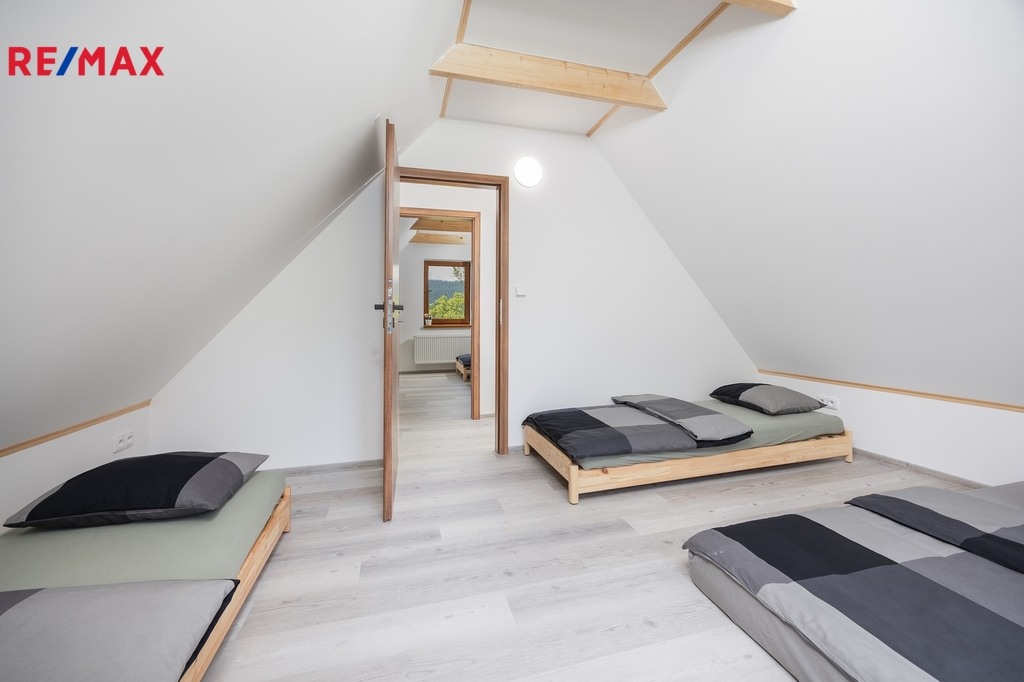 Nabízíme k prodeji výjimečnou rekreační usedlost v klidné části obce Chlum u Volar, tvořenou dvěma samostatnými domy s celkovou ubytovací kapacitou až 24 osob. Objekt je umístěn na prostorném pozemku o velikosti téměř 7 500 m², který zajišťuje naprosté soukromí, dostatečnou vzdálenost od hlavní komunikace a příjemné přírodní zázemí. Tato nemovitost je ideální jako investiční příležitost pro celoroční rekreační ubytování v atraktivní šumavské lokalitě. Obě 3D prohlídky najdete zde: WEST: "bit.ly/4l4NyfN" EAST: "bit.ly/446qkzP" Dispozice a vybavení: Dva samostatné domy (každý se samostatným vstupem) • 5 ložnic s různými typy lůžek (dvoulůžka, palandy, jednolůžka, dětská postýlka) • Ubytování až pro 24 osob • 2 plně vybavené kuchyně • 2 koupelny (sprchový kout, vana) • 3 toalety • Obývací pokoje s s kabelovou TV • Wi-Fi v obou objektech • Venkovní plynový gril • Elektrokotel s dálkovým ovládáním, Kotel na tuhá paliva, Kamna • Parkování až pro 5 vozů na pozemku Pozemek: • Rozloha: téměř 7 500 m² • Vzrostlé stromy zajišťující klid a soukromí • Vhodný pro relaxaci, rekreaci i rozvoj • Domy jsou dostatečně vzdálené od hlavní komunikace Lokalita: Obec Chlum se nachází v těsné blízkosti Volar a nabízí výborné podmínky pro aktivní trávení volného času. V okolí se nachází řada turistických a cyklistických tras, koupališť a výletních cílů. Lipno je vzdálené cca 12 km (Horní Planá), Vltava cca 1 km. V obci Volary (5 min autem) naleznete veškerou občanskou vybavenost: obchody (Penny, Coop), restaurace, bazén, vlakové nádraží. Výlety a aktivity v okolí: • Stezka korunami stromů Lipno (39 km) • Plešné jezero, Boubínský prales, Třístoličník • Cyklostezky: Stožecká, Jezerní, Frýdava • Koupání: Lipno, Vltava, bazény ve Volarech a Prachaticích • Lyžování: České Žleby, Mitterdorf (DE), Hochficht (DE) Výhody: Klidná lokalita s výbornou dostupností Velký pozemek a dvě samostatné jednotky Možnost okamžitého užívání nebo provozu rekreačního ubytování Flexibilní využití – bydlení, rekreace, podnikání V případě zájmu o více informací nebo osobní prohlídku mě neváhejte kontaktovat. Rád vás touto unikátní nemovitostí provedu. Spolupráce s konkurenčními realitními makléři vítána.