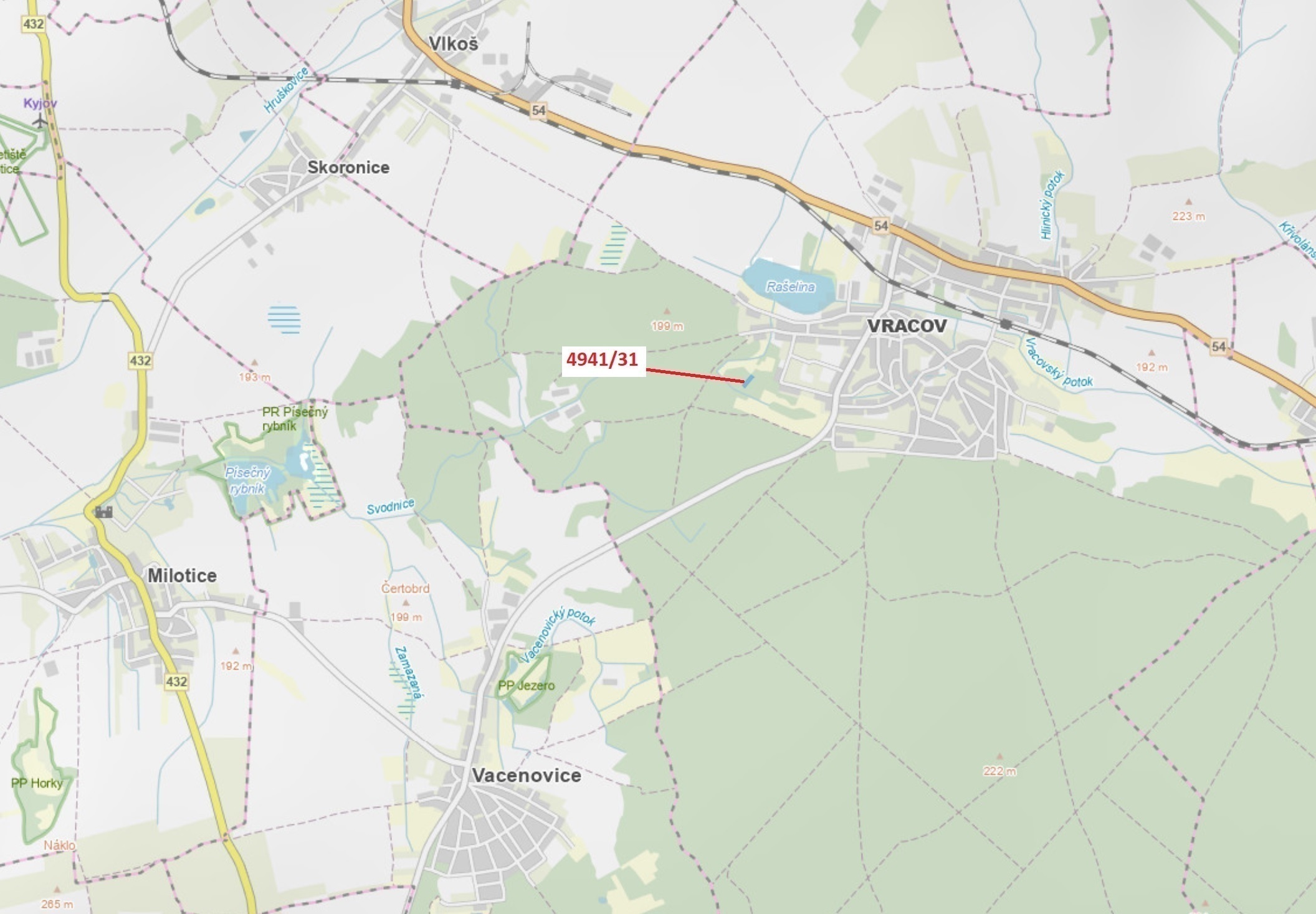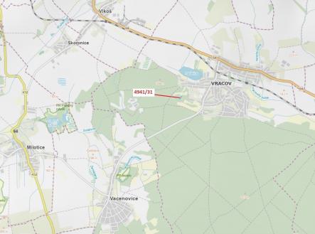 Lesní pozemek o výměře 2231 m2, parcelní číslo 4941/31, podíl 1/1, katastrální území Vracov, obec Vracov, obec s rozšířenou působností Kyjov, okres Hodonín, Jihomoravský kraj.