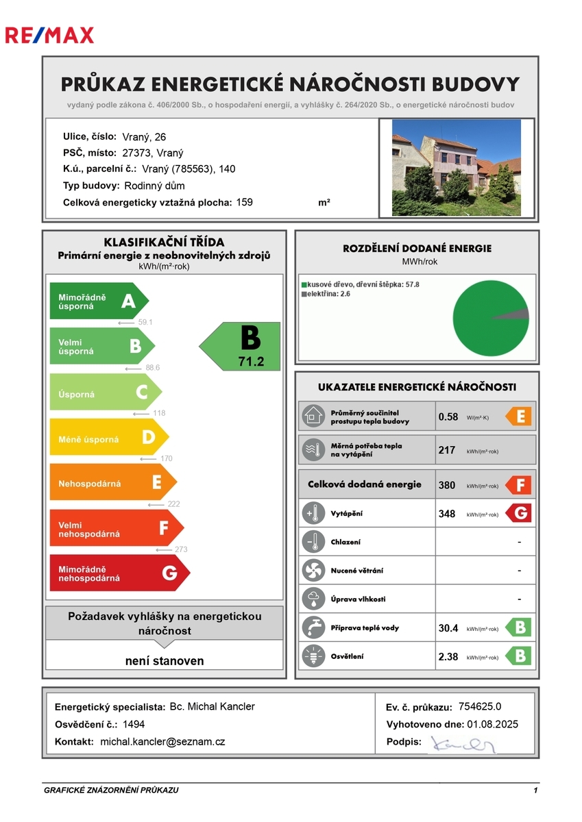 Energeticky úsporná chalupa 3+KK (98 m2) se zahradou, s možností rozšíření dispozice 2. NP (101 m2), v klidné lokalitě městyse Vraný. Ihned k nastěhování! Hledáte ideální chalupu, kde budete mít dostatek prostoru a soukromí, v malebném prostředí s kompletní občanskou vybaveností? Pak vás jistě zaujme naše exkluzivní nabídka chalupy v centru nádherné obce Vraný. Možno využít i jako vícegenerační rodinný dům. Budova o dispozici 3+KK je rozložena na třech podlažích a nabízí pohodlné bydlení či rekreaci pro rodinu i s možností rozšíření dispozice v 2.NP. V přízemí (1.NP) najdete prostorný obývací pokoj s krbovými kamny a kuchyňským koutem, ložnici, dětský pokoj, koupelnu s WC, prostor pro samostatné WC, komoru, technickou místnost (k rekonstrukci), chodbu s vysokým klenutým stropem, který dodává prostoru eleganci a terasu s výhledem do zahrady. V patře (2.NP, 101 m2) je připravený prostor ke kompletní rekonstrukci, kde lze vybudovat další tři samostatné pokoje a chodbu, dle vašich představ a když budete chtít ještě více prostoru, tak využijte i podkroví. Sklep (1.PP, 5 m2). Na pozemku o celkové ploše 566 m² vás čeká udržovaná, rovinatá zahrada s ovocnými stromy, ideální prostor pro relaxaci i zahradničení. Parkování můžete řešit pohodlně na vlastním pozemku nebo přímo před budovou na obecní komunikaci. Budova pochází z 20. let minulého století, v letech 2015-2020 prošla vydařenou rekonstrukcí a je ihned obyvatelná. Oplocený pozemek je napojen na inženýrskou síť elektro NN (rozvody v mědi), veřejný vodovod, jímka (napojení na veřejnou kanalizaci v brzké době), plynovod a telekomunikační síť. Vytápění je řešeno krbovými kamny s výměníkem a měděnými rozvody do radiátorů, ale zároveň je připravena instalace plynového kotle s rozvody podlahového topení do chodby a pokoje. Teplou vodu obstarává 120 l bojler. Plastová okna a dřevěné masivní dveře zajišťují tepelnou i zvukovou izolaci. Podlahy jsou nové betonové s keramickou dlažbou, laminem. K dispozici je platný průkaz energetické náročnosti budovy (PENB B – velmi úsporná) a aktuální projektová dokumentace (pasport). V obci Vraný, která byla v roce 2015 oceněna titulem Vesnice roku, máte veškerou občanskou vybavenost: základní školu, školku, poštu, obchody s potravinami, restaurace, knihovnu, dětská hřiště a parky. Dopravní dostupnost je zajištěna pravidelnou PID a železnicí. V Praze jste vozem za cca 30 minut. Rádi vám pomůžeme s financováním koupě. Pro více informací a domluvení prohlídky nemovitosti na adrese Vraný č.p. 26 kontaktujte makléře, tel. 602 273 133. Těšíme se na vás!