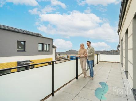 Byt 4+kk, 99m², prostorný balkon 20,9 m², 2 parkovací stání, zahradní domek, Vráto