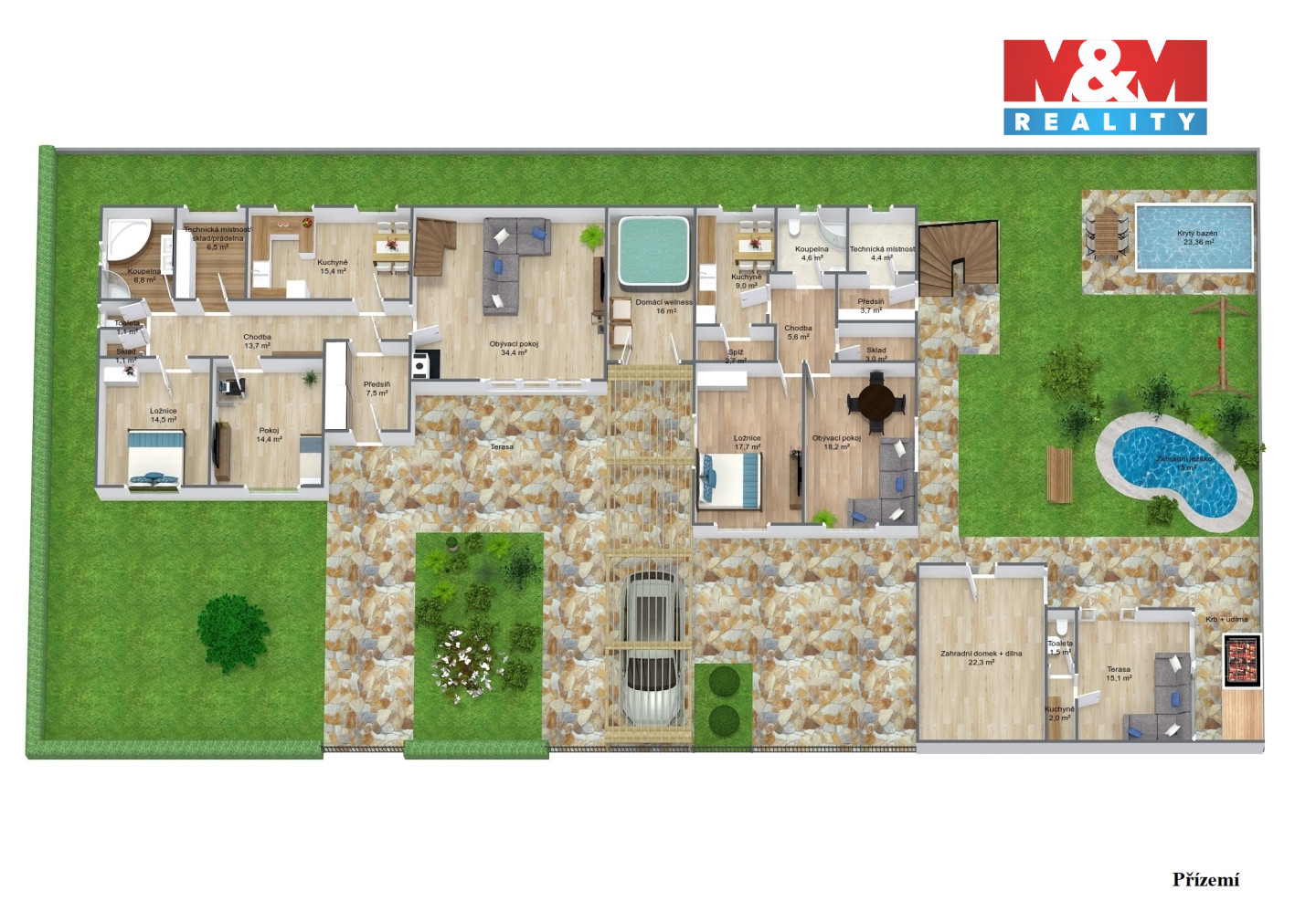 Nabízíme vám k prodeji velký a slunný rodinný dům v obci Vrbová Lhota, který je vhodný pro dvougenerační bydlení se dvěma samostatnými vchody. Nemovitost má celkovou výměru 369 m². První část domu 9+1 o výměře 297 m² zahrnuje v přízemí vstupní chodbu, obývací pokoj, kuchyň, ložnici, dětský pokoj, koupelnu s vanou, prádelnu, sklad, toaletu a wellness s vířivkou. V prvním patře se nachází dvě velké ložnice s toaletou, koupelnou a klimatizací, tři pokoje a šatna. Druhá část domu 2+1 o výměře 72 m² (podlahové vytápení). Pozemek o výměře 1166 m² nabízí zastřešenou terasu, okrasnou zahradu, bazén, jezírko, zimní zahradu s kuchyní a toaletou, venkovní krb s udírnou, prostorný zahradní domek a kryté parkovací stání pro 2 automobily. FVE 12 kWp. Dům se nachází v zástavbě rodinných domů, kde je klid a soukromí. V dostupné vzdálenosti pouhých 6 minut se nachází lázeňské město Poděbrady, kde naleznete veškerou občanskou vybavenost. 20 minut po D11 na Černý Most.
