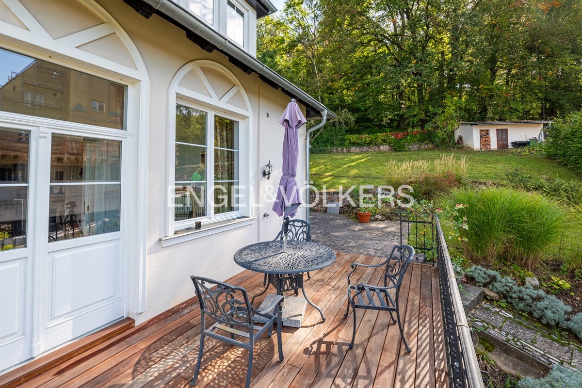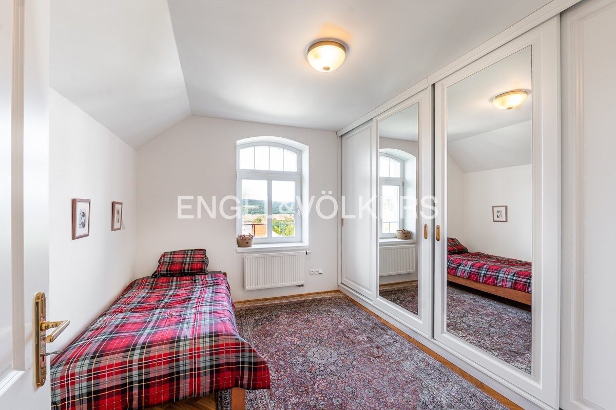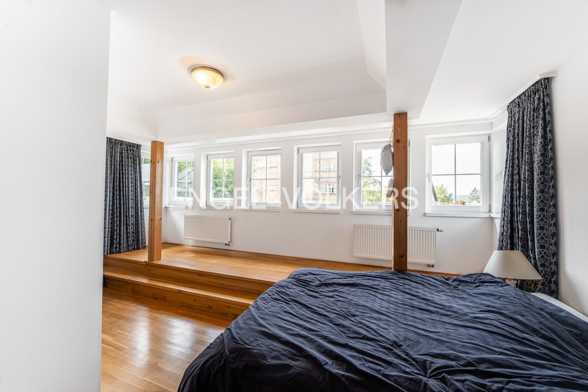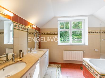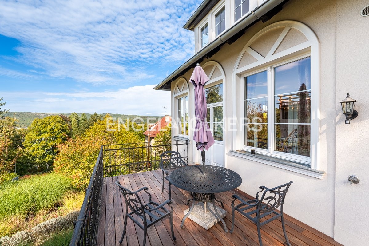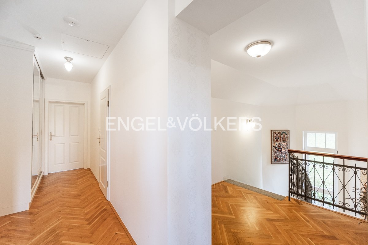 Krásná a vkusně zařízená secesní vila 6+kk se nachází v klidné lokalitě Všenor v blízkosti vlakové zastávky. Nepodsklepená vila se skládá ze tří pater. V přízemí se nachází kancelář, technické zázemí domu, toaleta a šatna. V prvním obytném patře se nachází zimní zahrada vedoucí na velkou terasu, prostorný obývací pokoj s krbem, jídelna a plně vybavená kuchyně se spotřebiči Electrolux. Všechny tyto prostory jsou propojeny a jsou ideální k reprezentačním účelům. Dále je na tomto patře samostatná toaleta, spíž a prádelna s pračkou a sušičkou. Po žulovém schodišti se vchází do 2. patra, kde se nachází hlavní ložnice s vlastní koupelnou, dvě další samostatné ložnice a druhá koupelna se sprchovým koutem. Chodba s vestavěnými skříněmi. K domu náleží zahrada a okolní les poskytující soukromí. K vile náleží zastřešené parkování až pro 3 vozy. Pronájem je možný ihned.