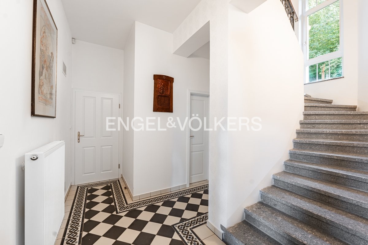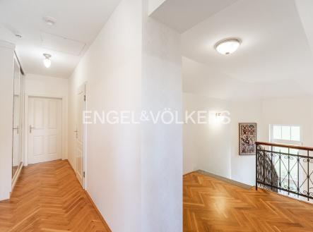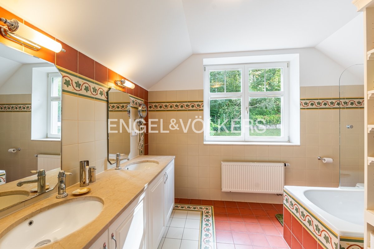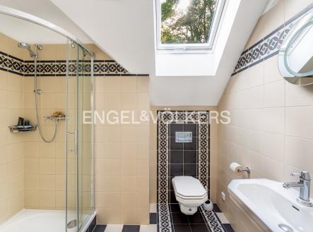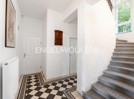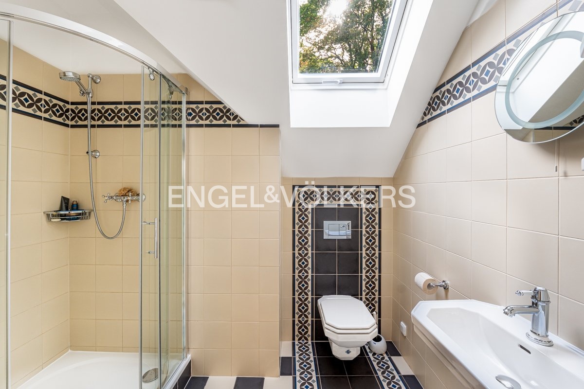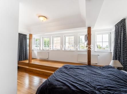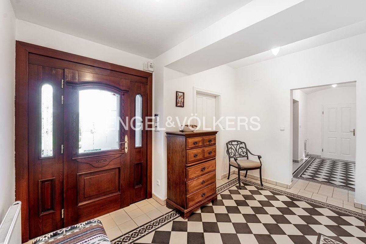 Krásná a vkusně zařízená secesní vila 6+kk se nachází v klidné lokalitě Všenor v blízkosti vlakové zastávky. Nepodsklepená vila se skládá ze tří pater. V přízemí se nachází kancelář, technické zázemí domu, toaleta a šatna. V prvním obytném patře se nachází zimní zahrada vedoucí na velkou terasu, prostorný obývací pokoj s krbem, jídelna a plně vybavená kuchyně se spotřebiči Electrolux. Všechny tyto prostory jsou propojeny a jsou ideální k reprezentačním účelům. Dále je na tomto patře samostatná toaleta, spíž a prádelna s pračkou a sušičkou. Po žulovém schodišti se vchází do 2. patra, kde se nachází hlavní ložnice s vlastní koupelnou, dvě další samostatné ložnice a druhá koupelna se sprchovým koutem. Chodba s vestavěnými skříněmi. K domu náleží zahrada a okolní les poskytující soukromí. K vile náleží zastřešené parkování až pro 3 vozy. Pronájem je možný ihned.