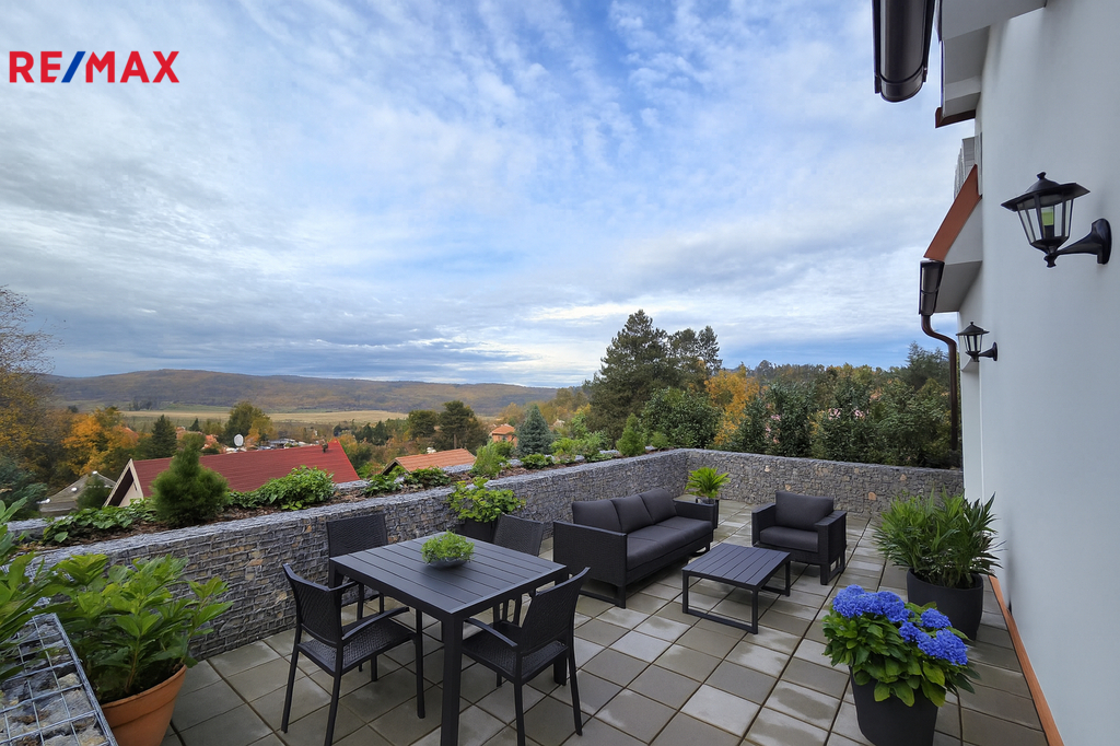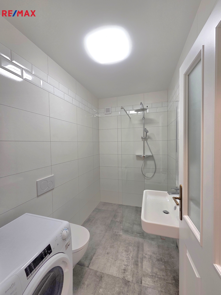 Hledáte k pronájmu výjimečné bydlení v přírodě a přitom kousek od Prahy? Pak by tato nabídka bytu o celkové ploše 102 m2 mohla být právě pro Vás. Světlý a příjemný byt 2+kk se nachází ve zcela nově, pečlivě a vkusně zrekonstruovaném domě, který disponuje pouze 4 jednotkami, což zaručuje klidné a komorní bydlení se soukromím. Na fotografiích je pro inspiraci použita vizualizace. Užitná plocha bytu je 39,08 m2, z kuchyně i ložnice se vchází na velkorysou terasu o výměře 58,35 m2, ze které si můžete užívat opravdu krásné výhledy do údolí na řeku Berounku, Český kras a brdské lesy, které začínají pár metrů za domem. K bytu patří také sklep o výměře 4,62 m2, kde je možnost nabíjecí stanice pro elektromobil. Celková plocha je celkem 102 m2. Kromě toho je přímo u domu k dispozici parkovací místo (18 m2), odsud se po schodech dostáváme ke vchodu do bytu, ze kterého vstupujeme do předsíně, do koupelny (s wc a sprchovým koutem), dále do obývacího pokoje s kuchyňským koutem a následně do ložnice. Prostorná kuchyňská linka je kromě spousty úložného prostoru vybavená myčkou, digestoří, elektrickou varnou deskou a ledničkou s mrazákem. V koupelně je pračka se sušičkou. Byt má svoje vlastní tepelné čerpadlo napojené na zásobník teplé vody (150 litrů), vytápění je podlahové. Podlahy jsou dřevěné (dub) a dlažba. Ve Všenorech nebo sousedících Dobřichovicích najdete veškerou občanskou vybavenost, za 20 minut jste ze Všenor vlakem na Smíchovském nádraží. PENB bude dodán, prozatím je uvedena třída G. V případě více vážných zájemců si pronajímatel vyhrazuje právo vybrat nájemce na základě jím zvolených kritérií. Velmi doporučujeme!